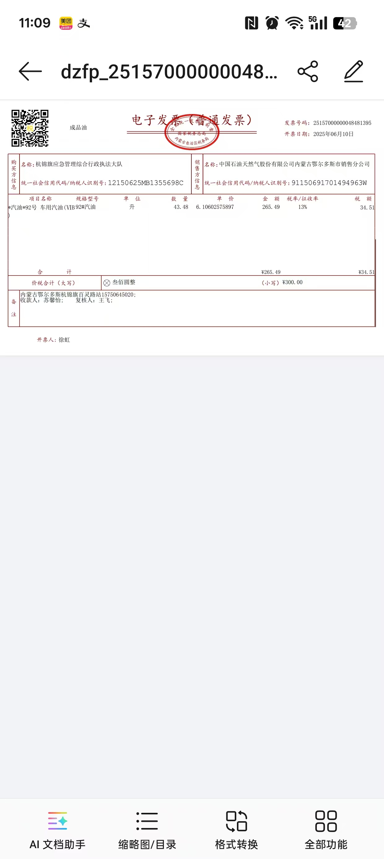 | * | 汽油 | **.**(燃油费) | ¥*.** | ¥***.** | 车辆加油 |