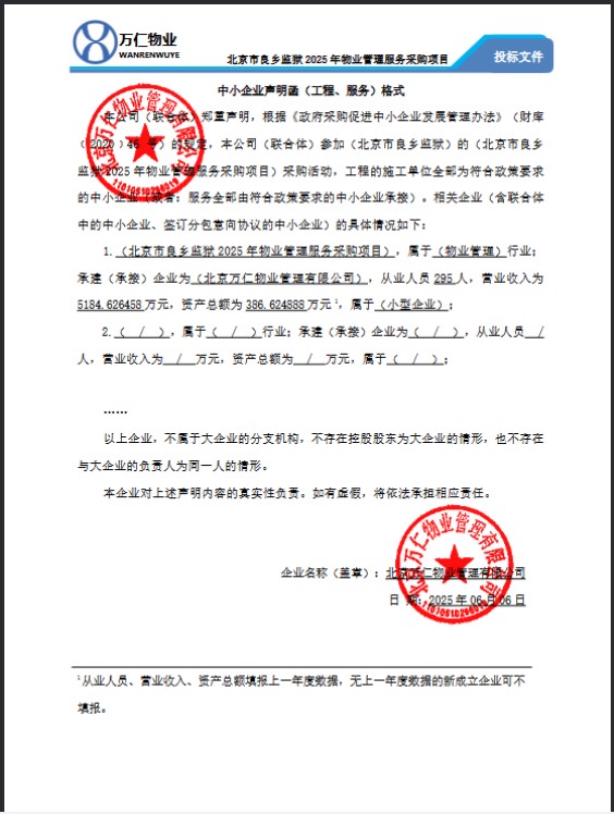 | 北京万仁物业管理有限公司 | * | ***.*万元 | ***.*万元 | 详见采购文件 |