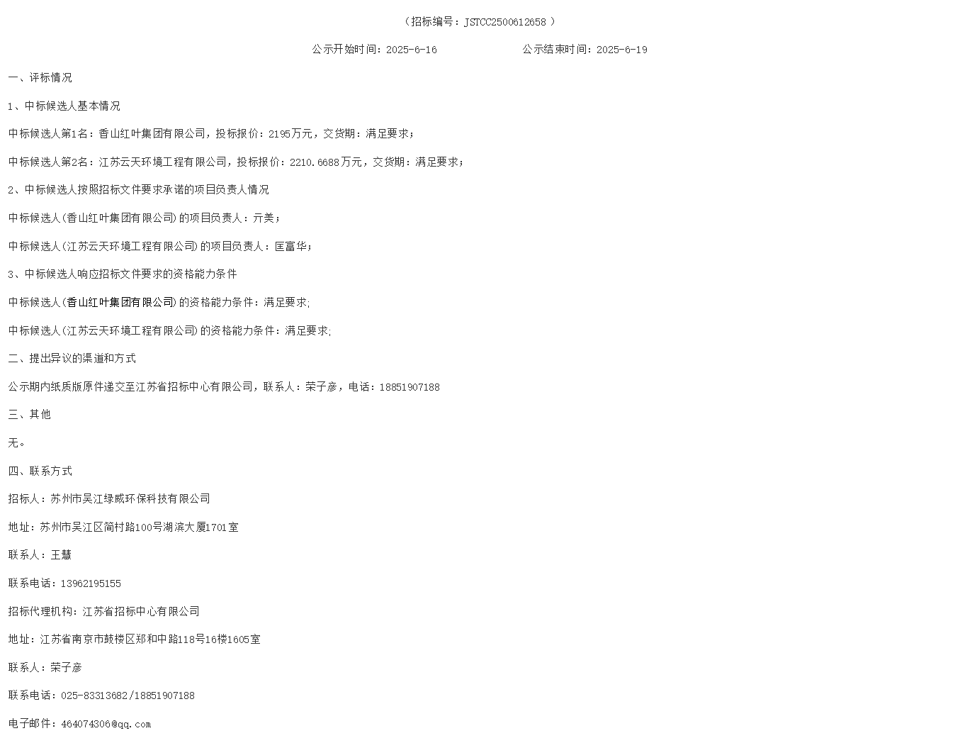 中标候选人(江苏云天环境工程有限公司)的资格能力条件:满足要求;