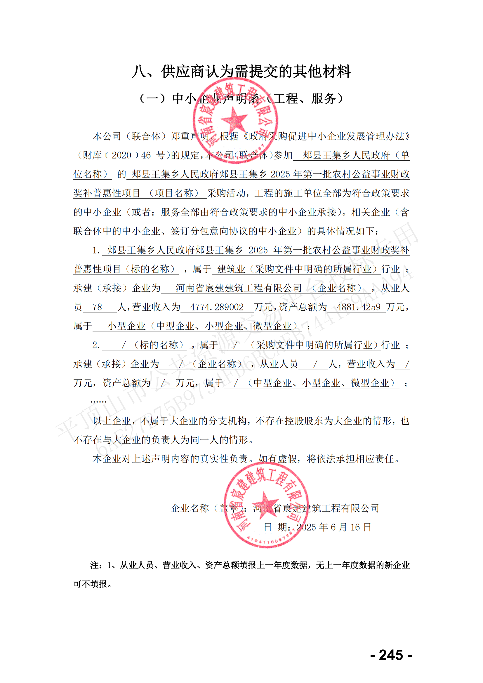 | *、采购项目名称:郏县王集乡人民政府郏县王集乡****年第一批农村公益事业财政奖补普惠性项目 | |||||||||||||||||||||||||||||||