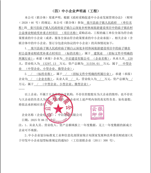 栾川县庙子镇人民政府庙子镇白云深处乡村休闲旅游建设项目中的庙子镇农村公益事业财政奖补重点村项目*中标公告