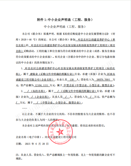 | *、采购项目名称:叶县农村公路建设养护中心叶县保安镇水库路修复性养护工程项目 | |||||||||||||||||||||||||||||||