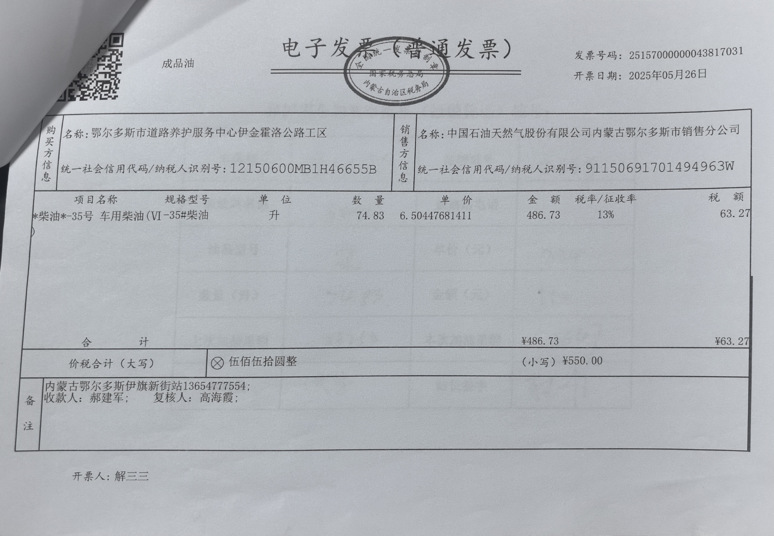 鄂尔多斯市道路养护服务中心伊金霍洛公路工区车辆加油(新街养护站***线)政府采购合同公告