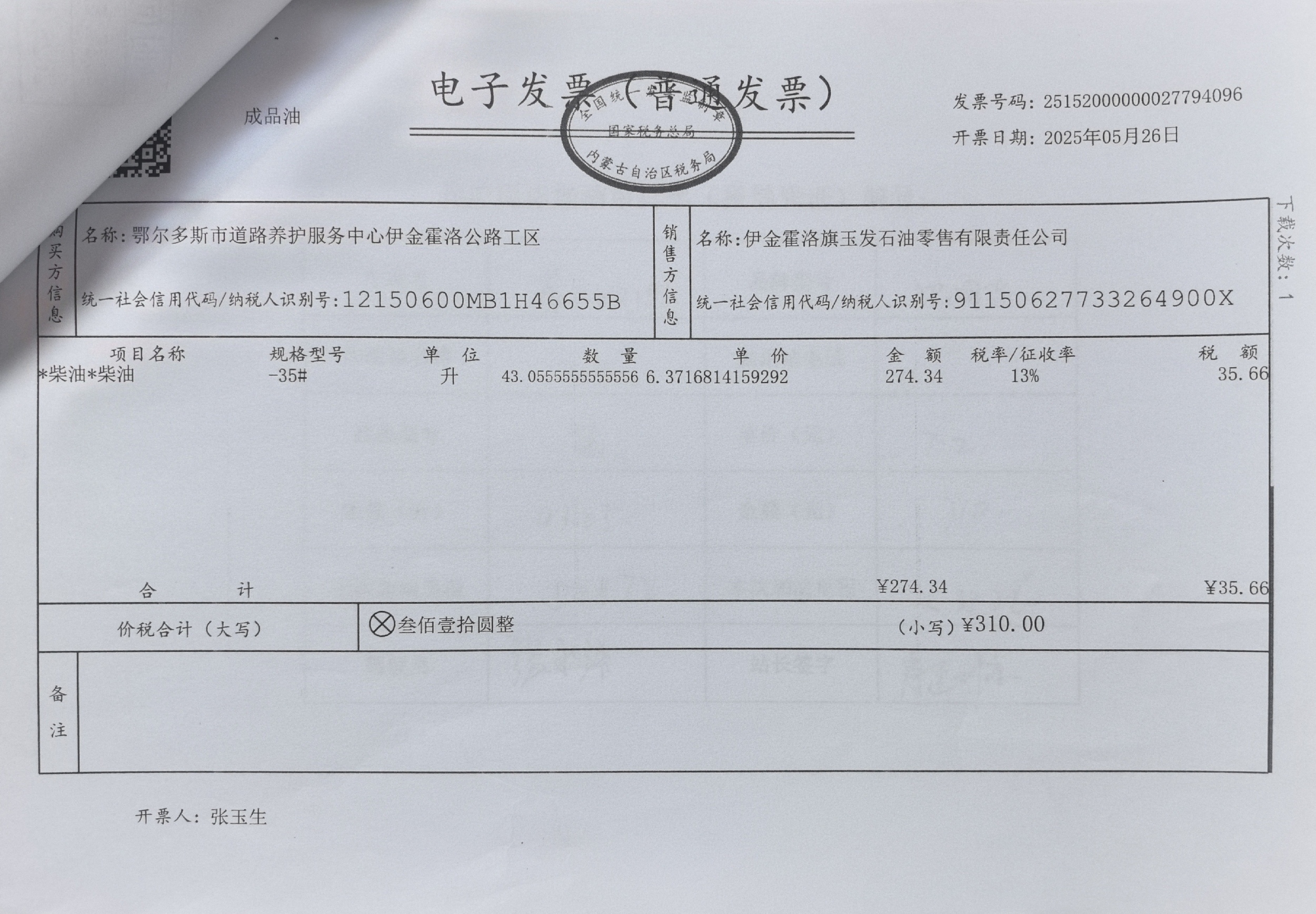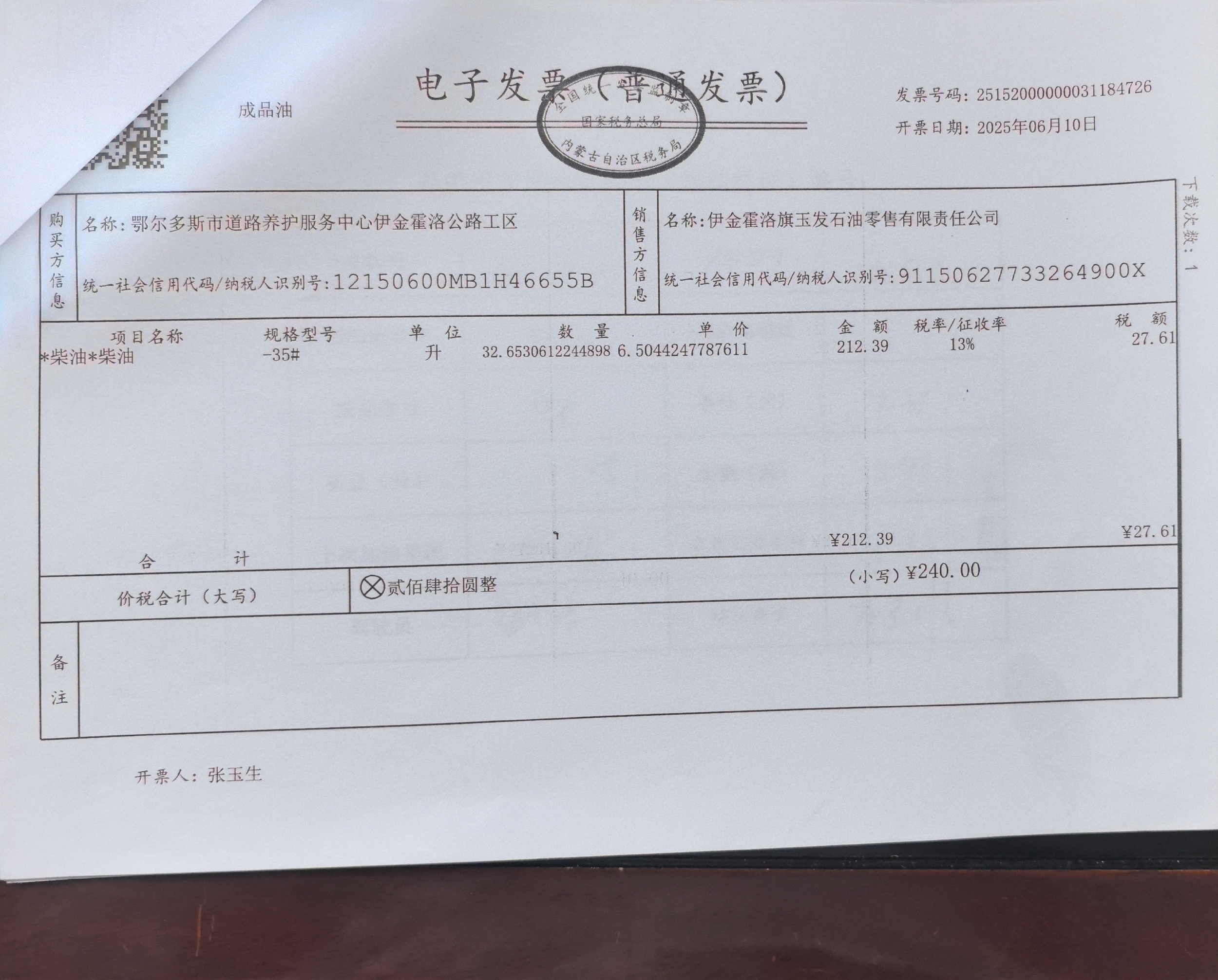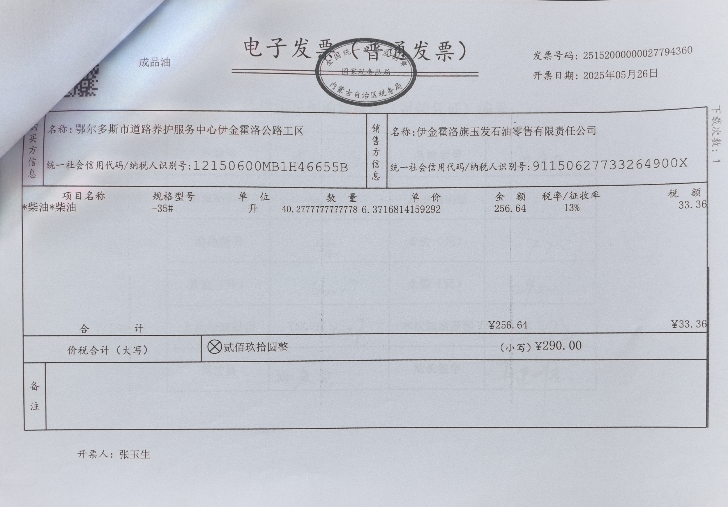 鄂尔多斯市道路养护服务中心伊金霍洛公路工区车辆加油(新街养护站210线)政府采购合同公告