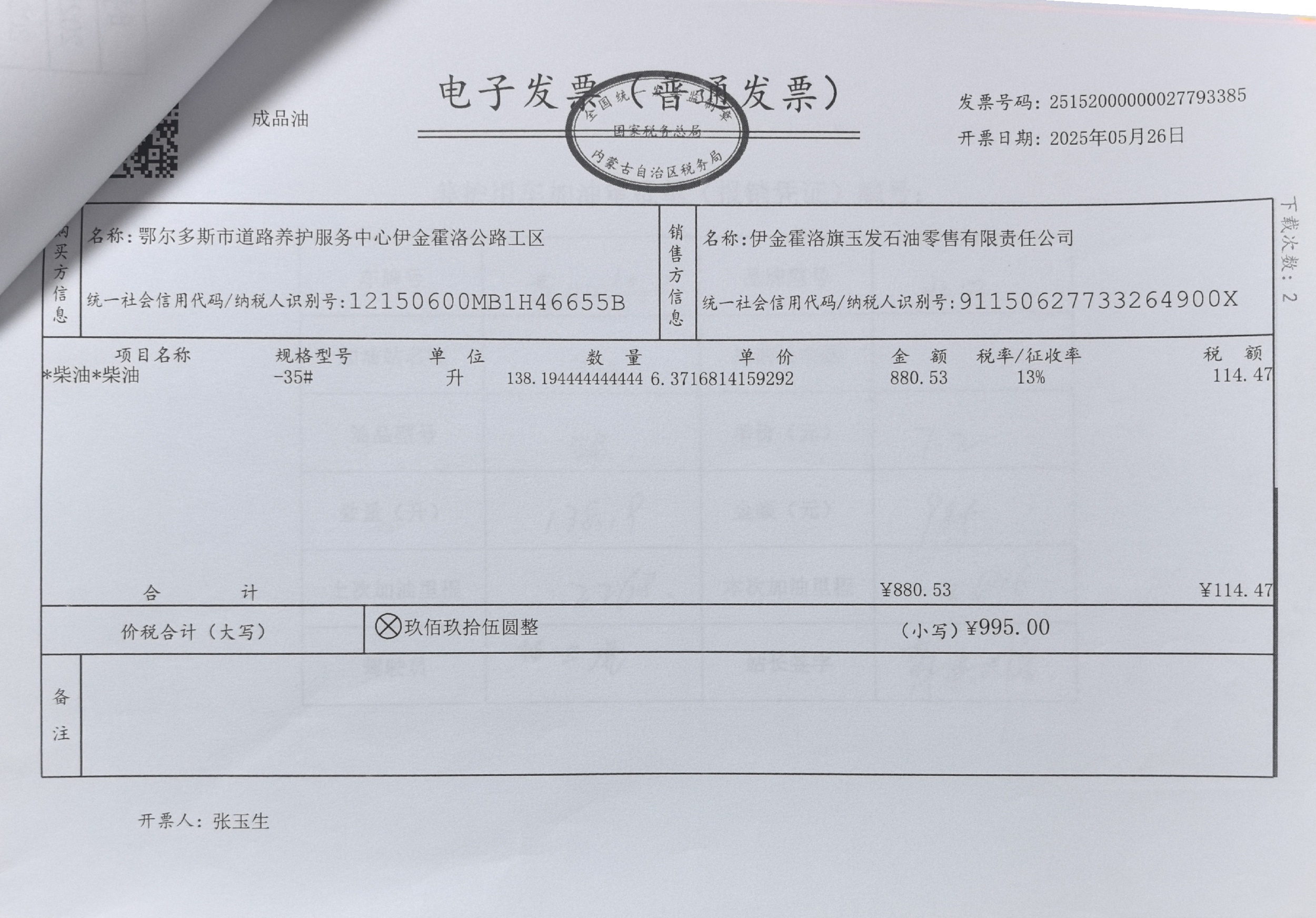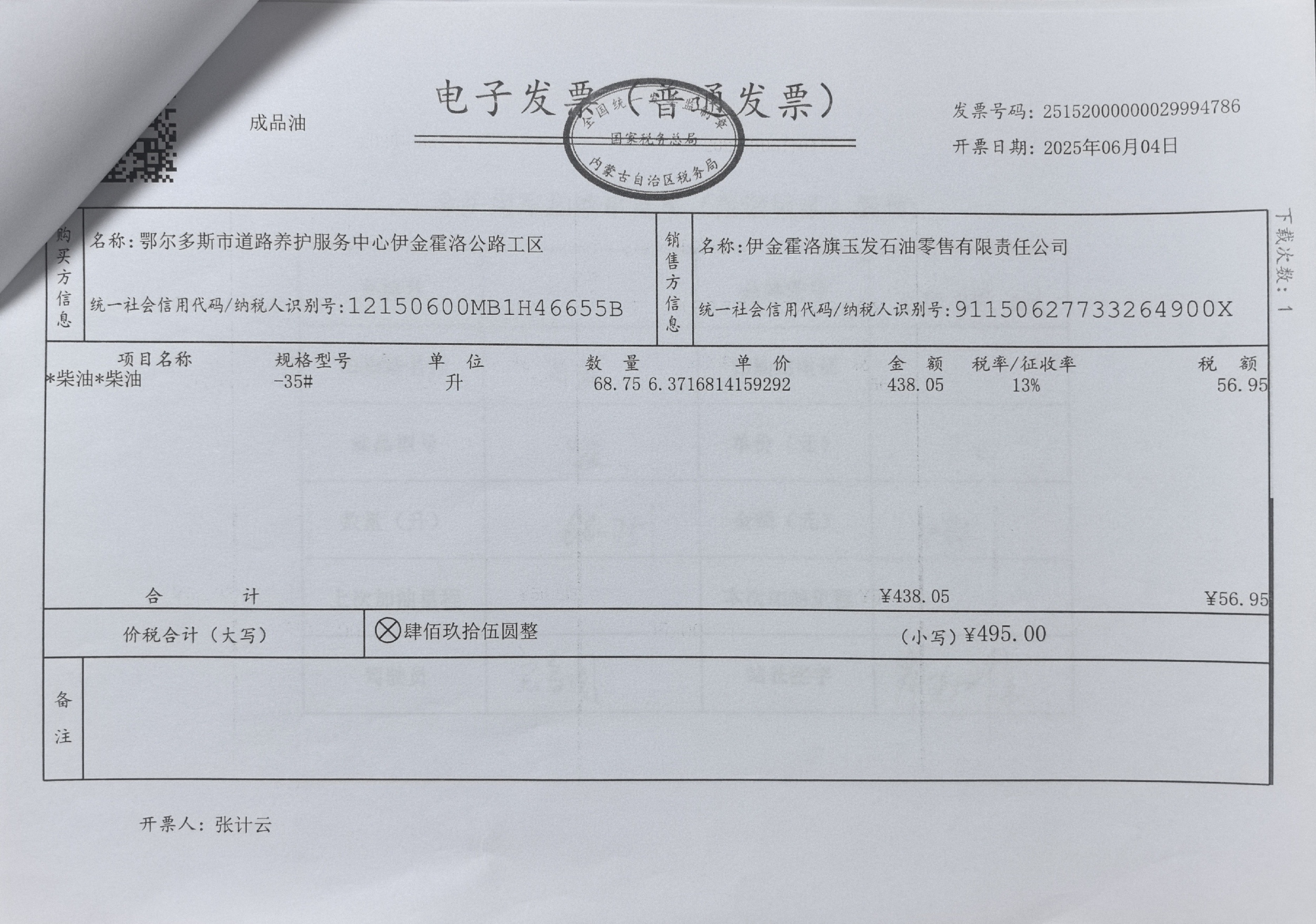 鄂尔多斯市道路养护服务中心伊金霍洛公路工区车辆加油(新街养护站***线)政府采购合同公告