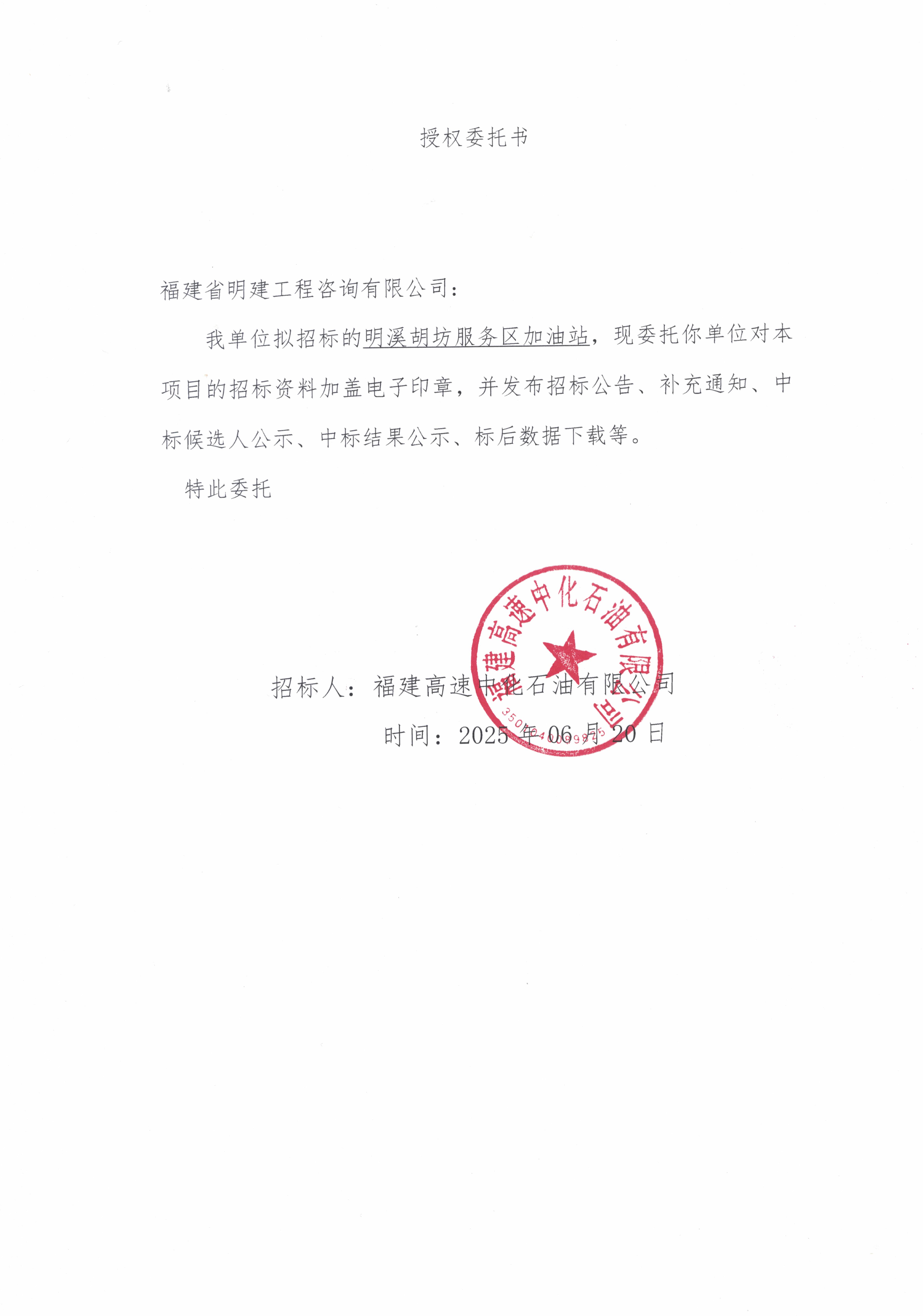 本招标项目明溪胡坊服务区加油站已由福建省发展和改革委员会以闽发改网审交通〔****〕** 号文批准建设,建设单位为三明元溪高速公路有限责任公司, 建设资金来源三明元溪高速公路有限责任公司资本金及三明市筹集,出资比例为**%及**%,招标人为福建高速中化石油有限公司,委托的招标代理单位为福建省明建工程咨询有限公司。本项目已具备招标条件,现对该项目的施工进行公开招标。