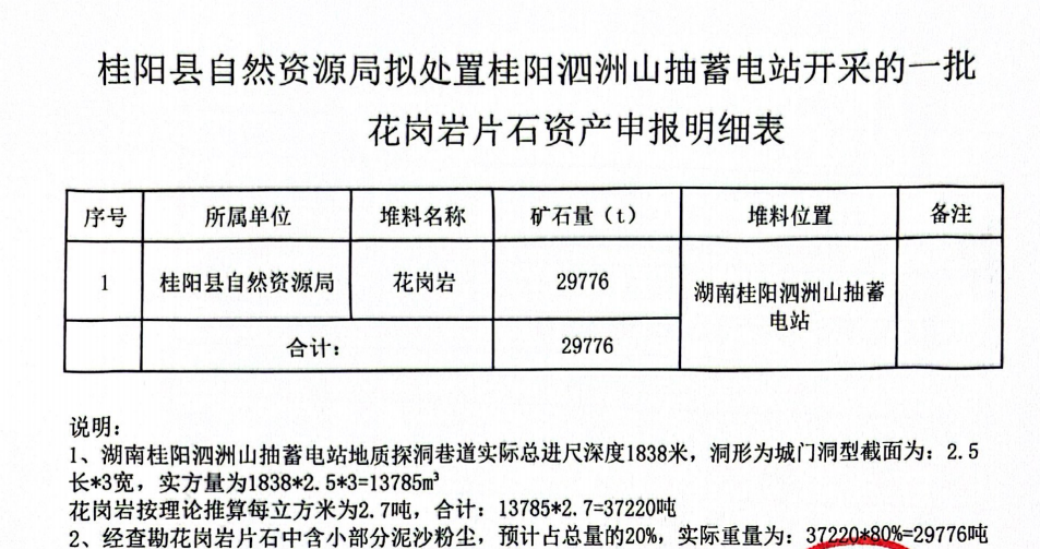 标的为桂阳县自然资源局拟处置桂阳泗洲山抽蓄电站开采的一批花岗岩片石资产整体拍卖,总重量约*****吨,标的详情请见《一批花岗岩片石资产申报明细表》。标的评估价**.***万元即整体起拍价,竞拍保证金*万元,合同履约保证金*万元整。本次拍卖标的规格等相关所有数据以委托方提供的资料为准,如有出入不影响本次拍卖的成交价格。 |