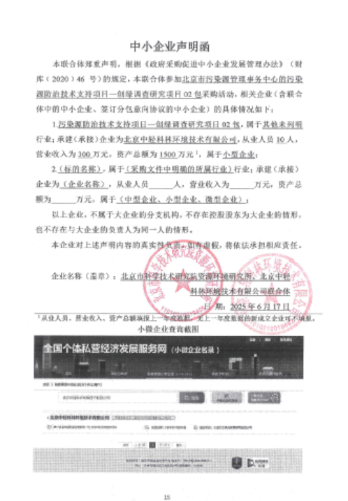 中标成交供应商名称:北京市科学技术研究院资源环境研究所、北京中轻科林环境技术有限公司组成的联合体