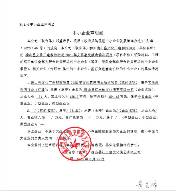 确山县文化广电和旅游局2025年文化惠民演出场次项目-成交公告