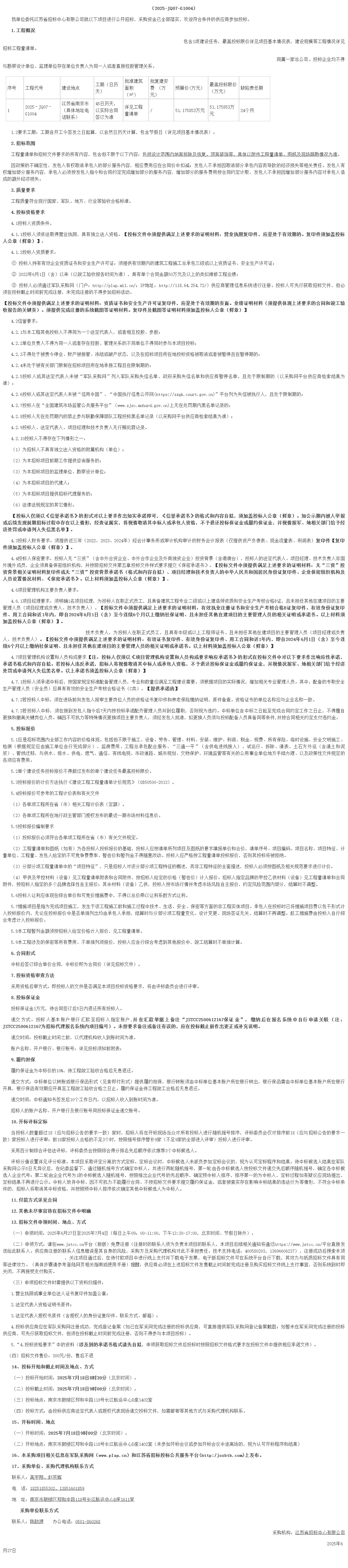 | * | ****–****–***** | 江苏省南京市(具体地址电话联系) | **日历天,以实际合同签订为准 | 详见工程量清单 | / | **.******万元 | **.******万元 | **个月 |