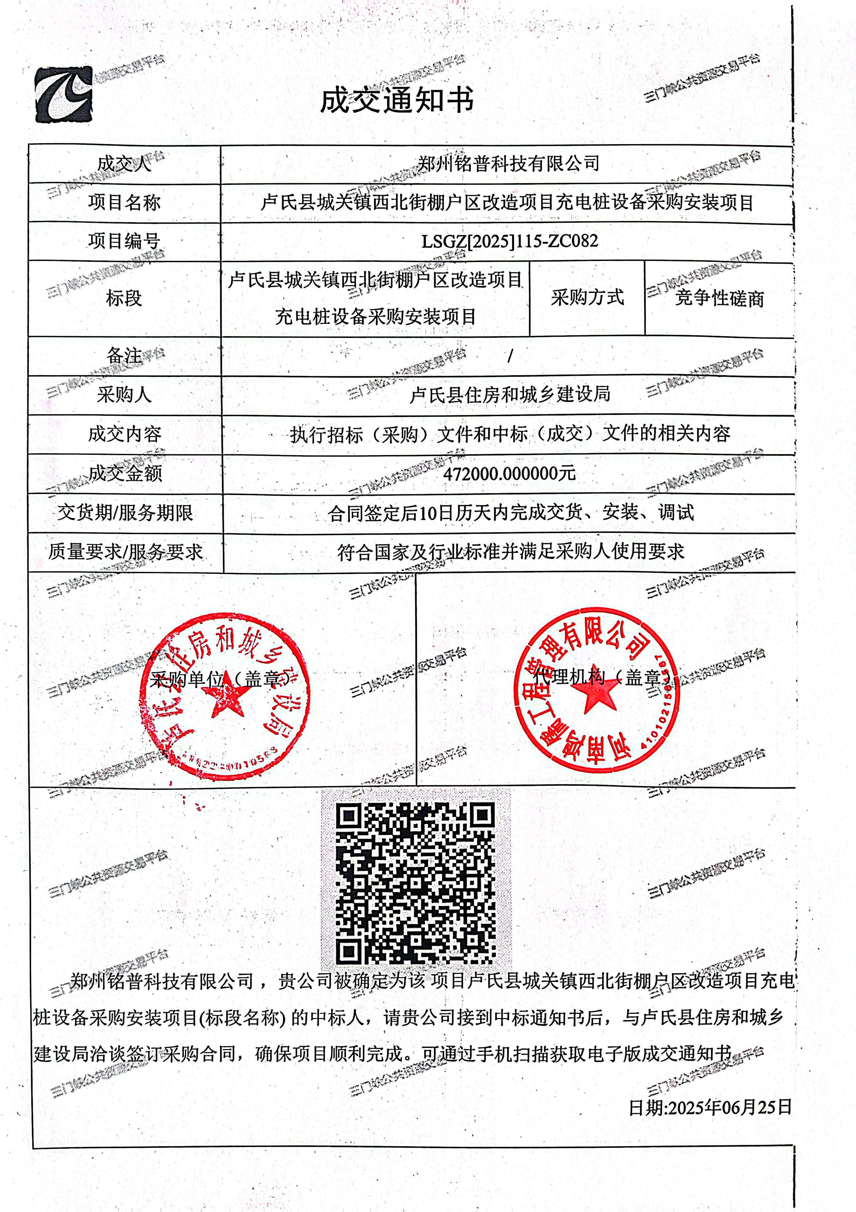 | 二、合同名称:卢氏县城关镇西北街棚户区改造项目充电桩设备采购安装项目 | ||||||||||||