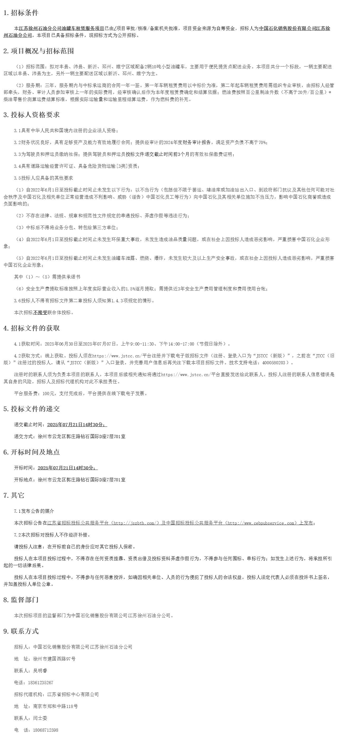江苏徐州石油分公司油罐车租赁服务项目招标公告(二次公告)(招标编号:***************)