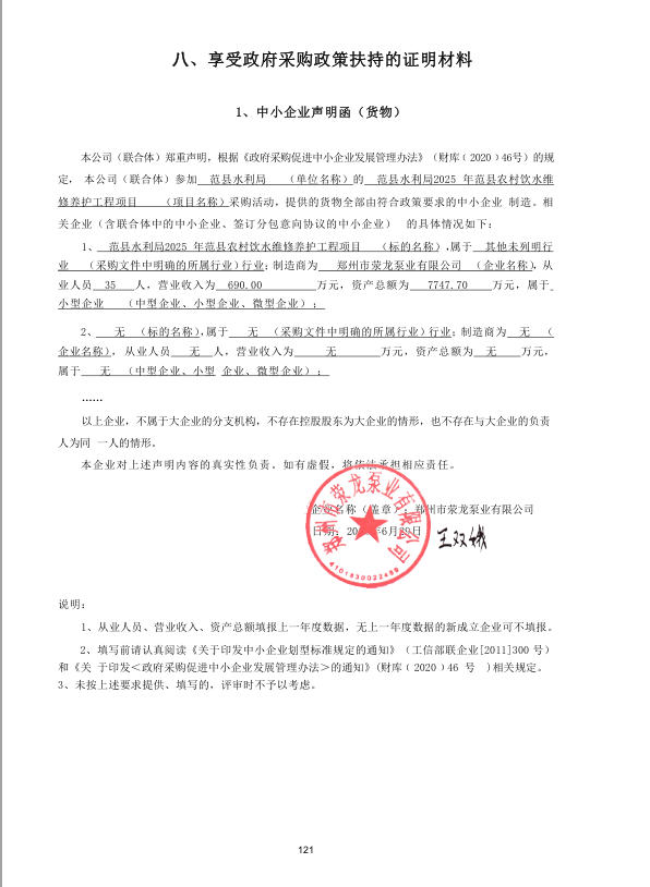 范县水利局2025年范县农村饮水维修养护工程项目-成交公告