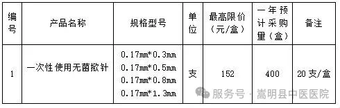 云南省昆明市嵩明县中医医院一次性使用无菌揿针采购竞争性谈判公告