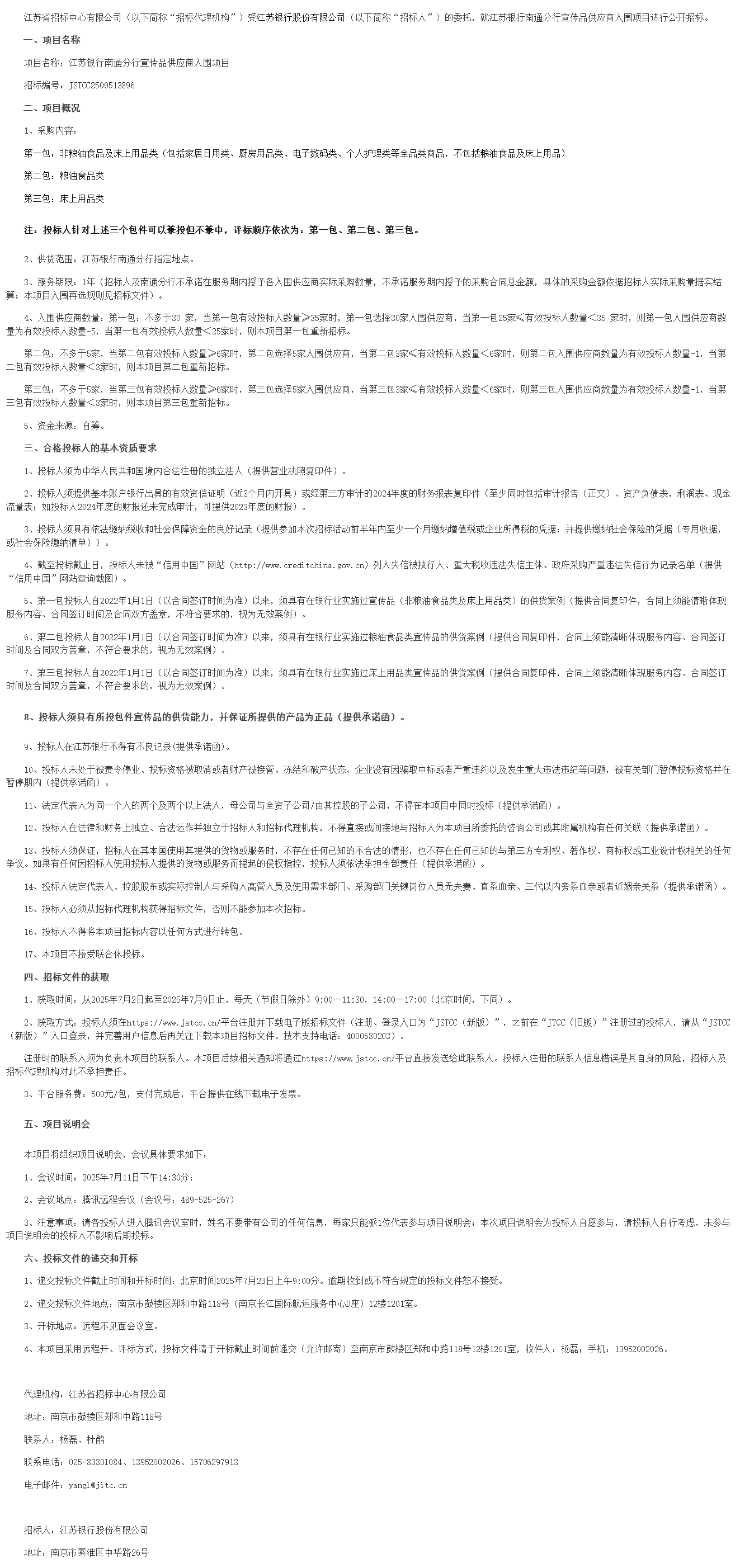 江苏省招标中心有限公司(以下简称“招标代理机构”)受江苏银行股份有限公司(以下简称“招标人”)的委托,就江苏银行南通分行宣传品供应商入围项目进行公开招标。