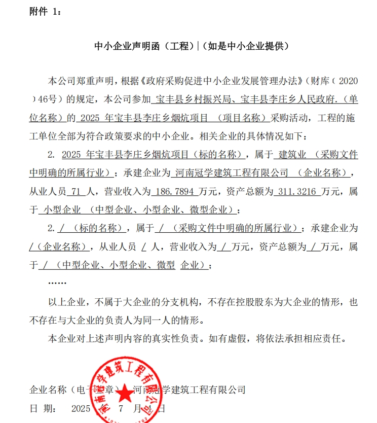 宝丰县乡村振兴局2025年宝丰县李庄乡烟炕项目-成交公告