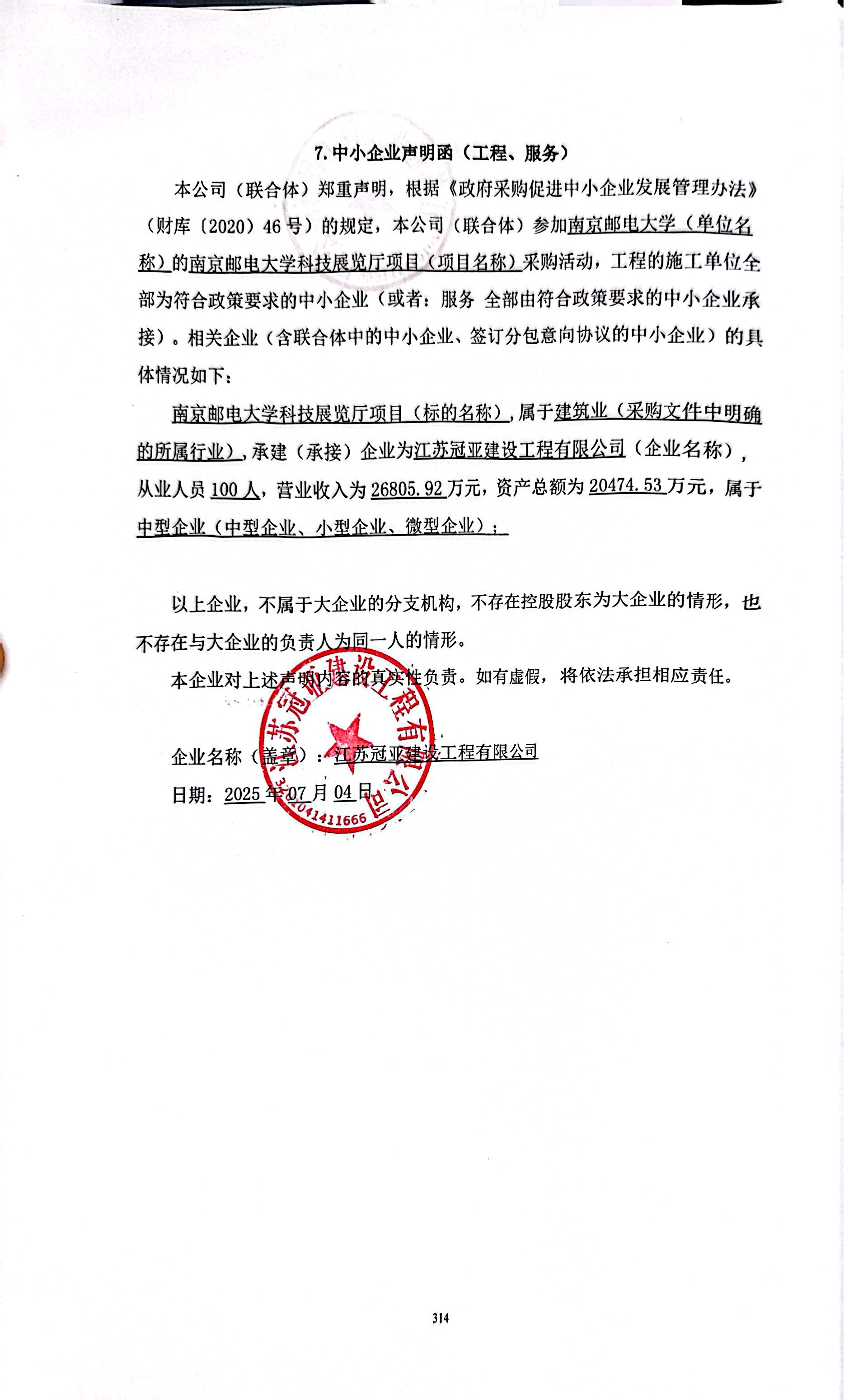 中小企业申明函.***