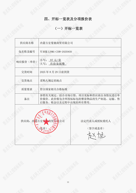 二、项目名称:内蒙古艺术学院****年新生军训服及床上用品代理采购项目