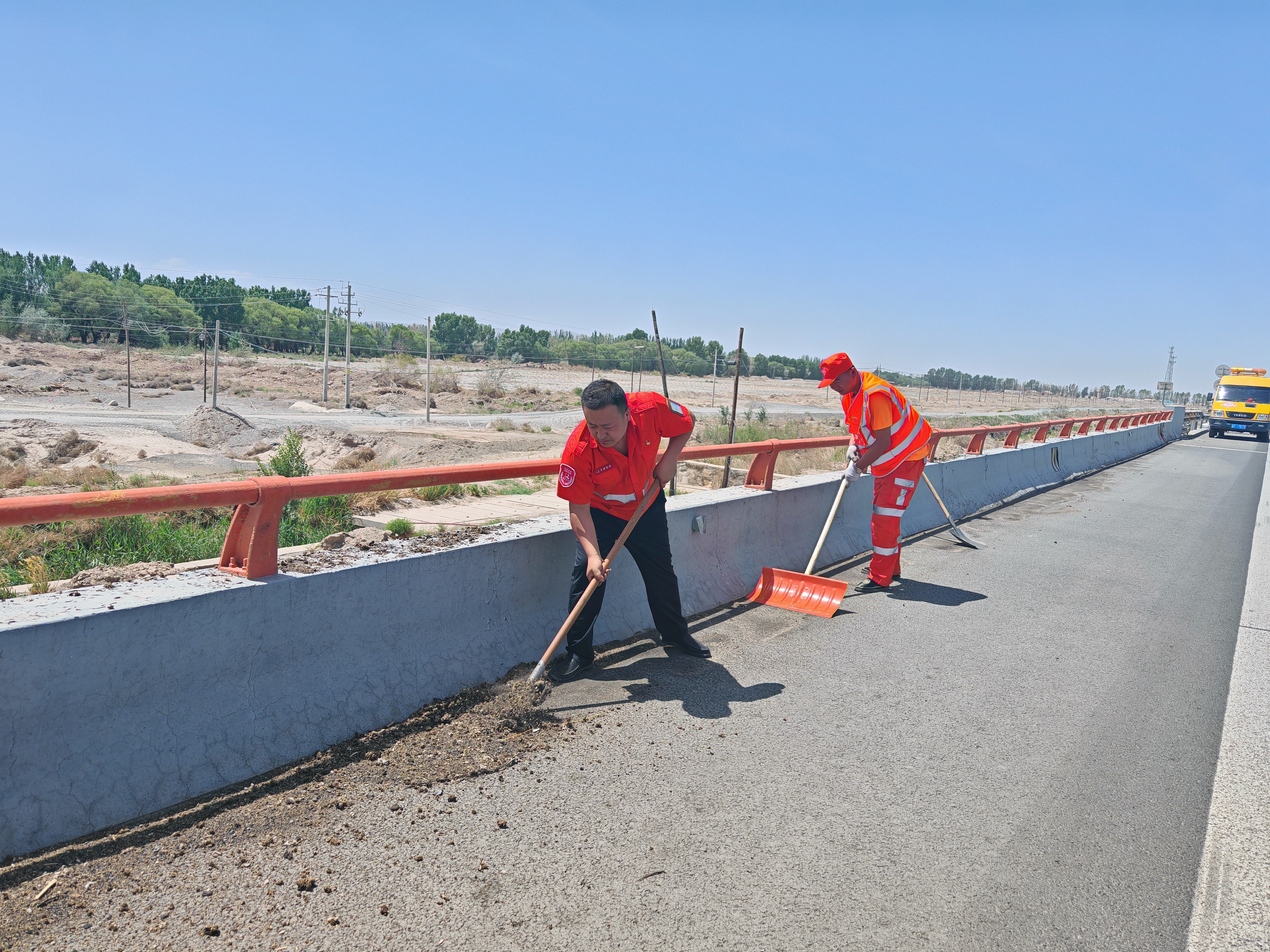 柳园清障救援大队党支部将党建工作与生产经营深度融合,结合“三大行动”开展路域环境整治主题党日,组织“党员突击队”对管辖路段路肩、边沟散落物、堆积物、白色垃圾等进行全面清理。同时,对沿线的标志标牌进行检查和维护,确保其清晰醒目,为过往司乘人员提供准确的指引。主题党日活动不仅增强了党员的责任感和使命感,也为保障高速公路的安全畅通、提升运营服务质量起到了积极的推动作用。