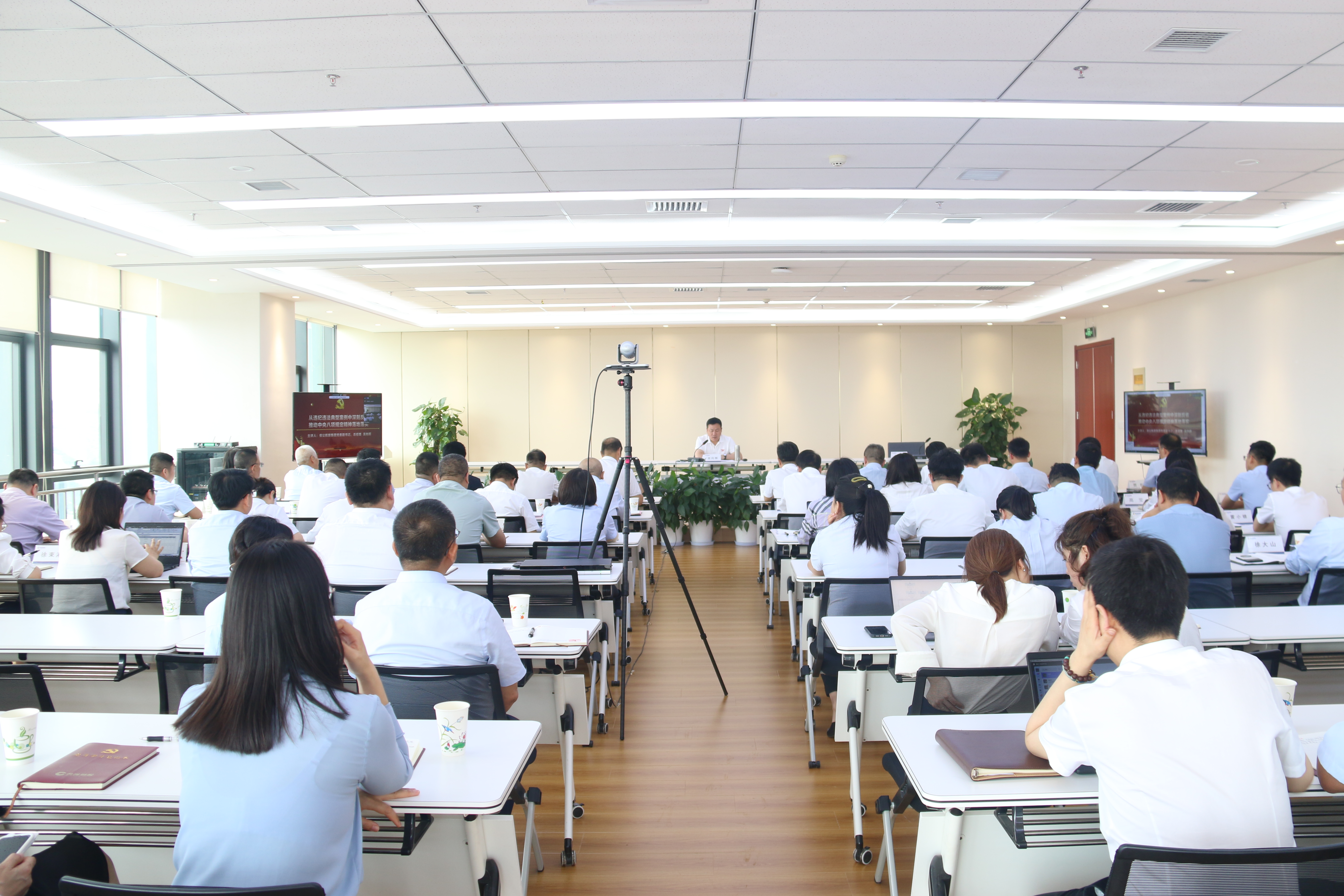 调研后,吴向辉以《从违纪违法典型案例中深刻反省、推动中央八项规定精神落地落实》为题讲授专题党课。吴向辉强调,黄河财险全体党员干部要将深入贯彻中央八项规定精神学习教育与巡视整改、落实年度目标任务相结合,以学习教育的新成果推动高质量发展取得新成效。吴向辉要求,一要坚定理想信念。提高政治站位、常补精神之钙,勤学善思、知行合一,清清白白做人、干干净净做事,对得起集团公司党委的信任和重托。二要树牢规矩意识。坚持正确的政绩观和业绩观,树立正确的人生观、价值观和世界观。审计、纪检等部门要坚持联动问效。严以律己、慎独慎微,对组织负责、对自己负责、对家庭负责。三要强化监督制约。习惯在监督下工作生活,重大事项及时请示报告。对查摆的问题,要逐条逐项分类整改到位。涵养清风正气,营造干事创业良好生态。四是要锤炼过硬作风。健全风腐同查机制,对“四风”问题,坚持冒头就打,对歪风邪气,坚持“零容忍”,领导班子要带头树新风、压邪气。五要强化责任担当。将深入贯彻中央八项规定精神融入日常,对标负面典型,深刻自身反省,剖析自身存在的问题和短板弱项,按照集团公司的各项决策部署,全力以赴推动黄河财险持续健康发展。