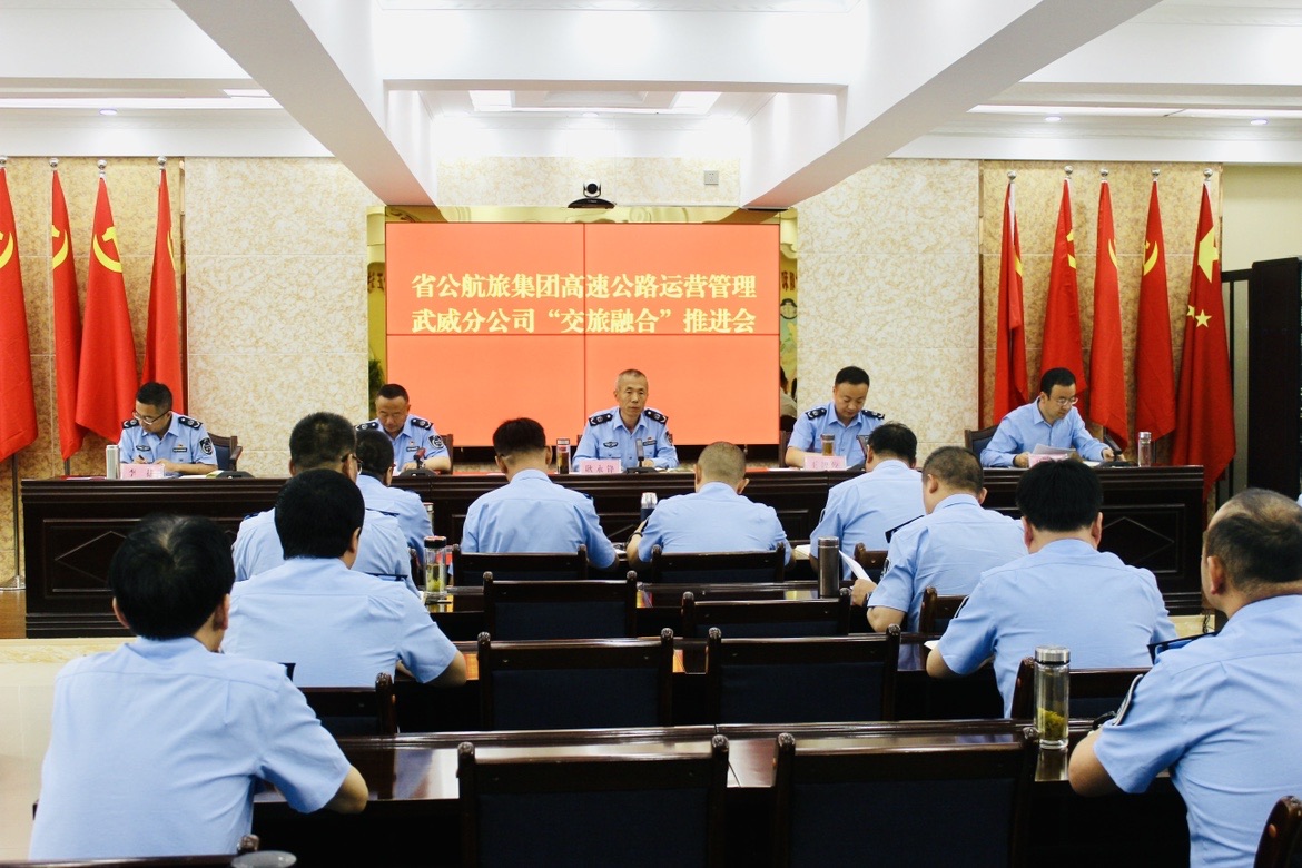 *月**日,高速公路运营管理武威分公司组织召开“交旅融合”推进会,研究部署相关工作,分公司机关全体人员、各收费(隧道)所及清障救援大队班子成员、党员代表等通过线上线下方式参加。