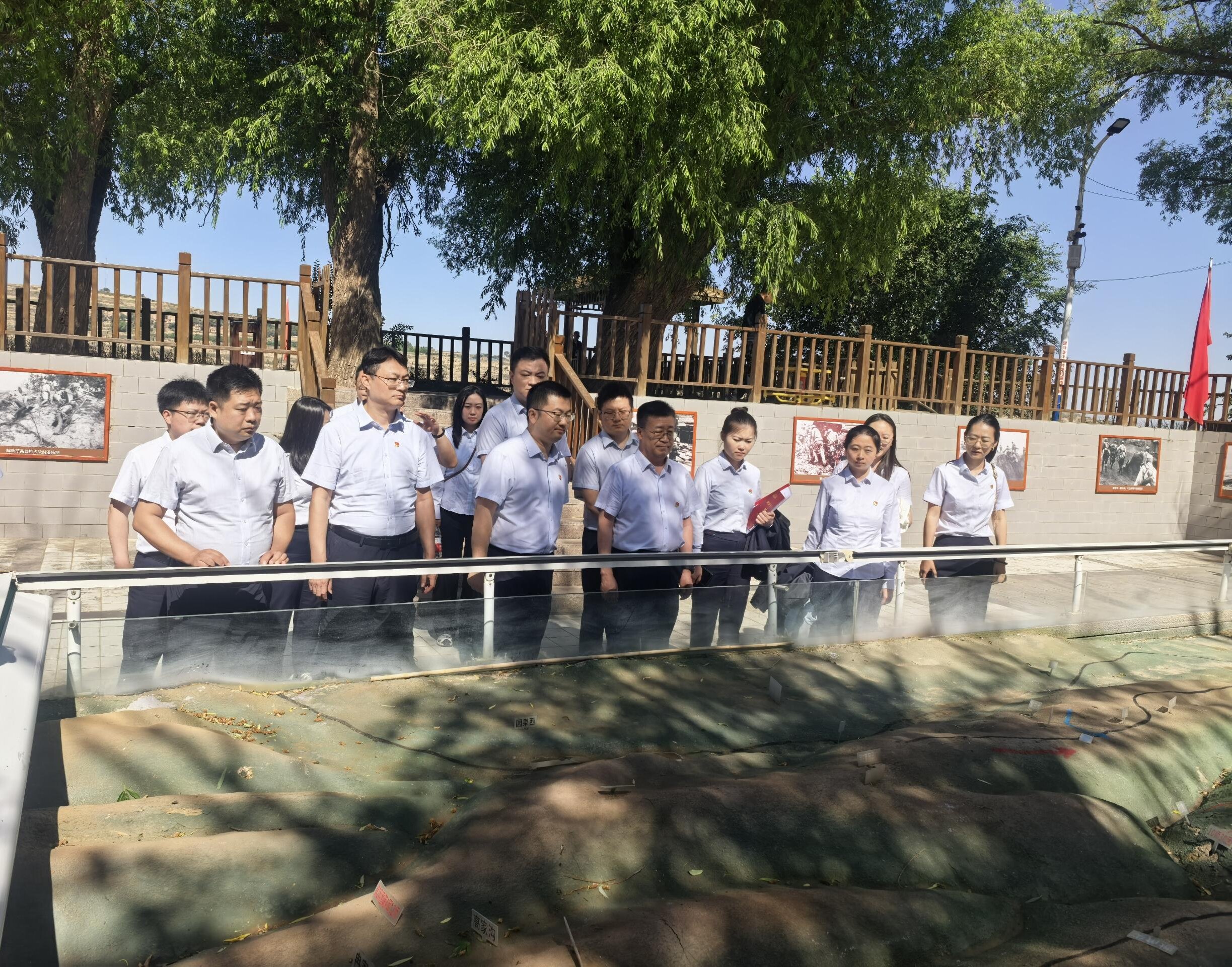 在沈家岭战役遗址,全体党员同志沿着乡间小路一路向前,参观体验了红色文化广场、红色文化长廊、战斗沙盘模型、战壕复原体验区、军事素质拓展体验场。通过参观学习,了解了沈家岭战役历史事迹以及沈家岭作为兰州“锁钥”在兰州战役中发挥的重要作用。全体党员同志踏入沈家岭红色文化广场,淬炼党性,升华思想;在战地沙盘和微缩型战壕体验真实战场环境,亲身感受战争的壮烈和残酷;在红色文化长廊参观宣传主题景观,感受革命先烈浴血奋战的英雄气概。