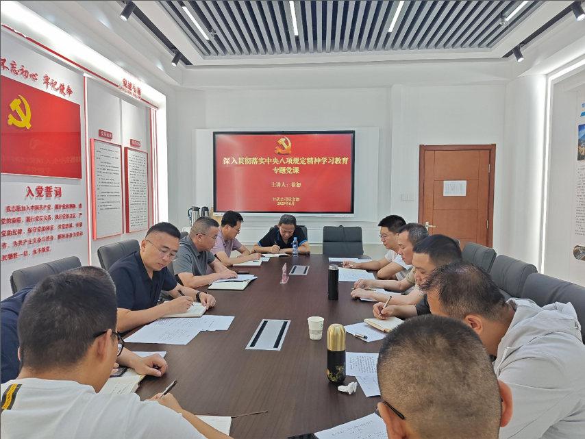 为深入贯彻落实中央八项规定及其实施细则精神,深化党的作风建设,推动学习教育走深走实,*月**日上午,公司党委副书记、总经理徐恕以《提升党性修养 涵养清风正气坚定不移推进项目公司高质量发展提质增效》为题,为甘武项目公司党支部党员干部职工讲授专题党课。