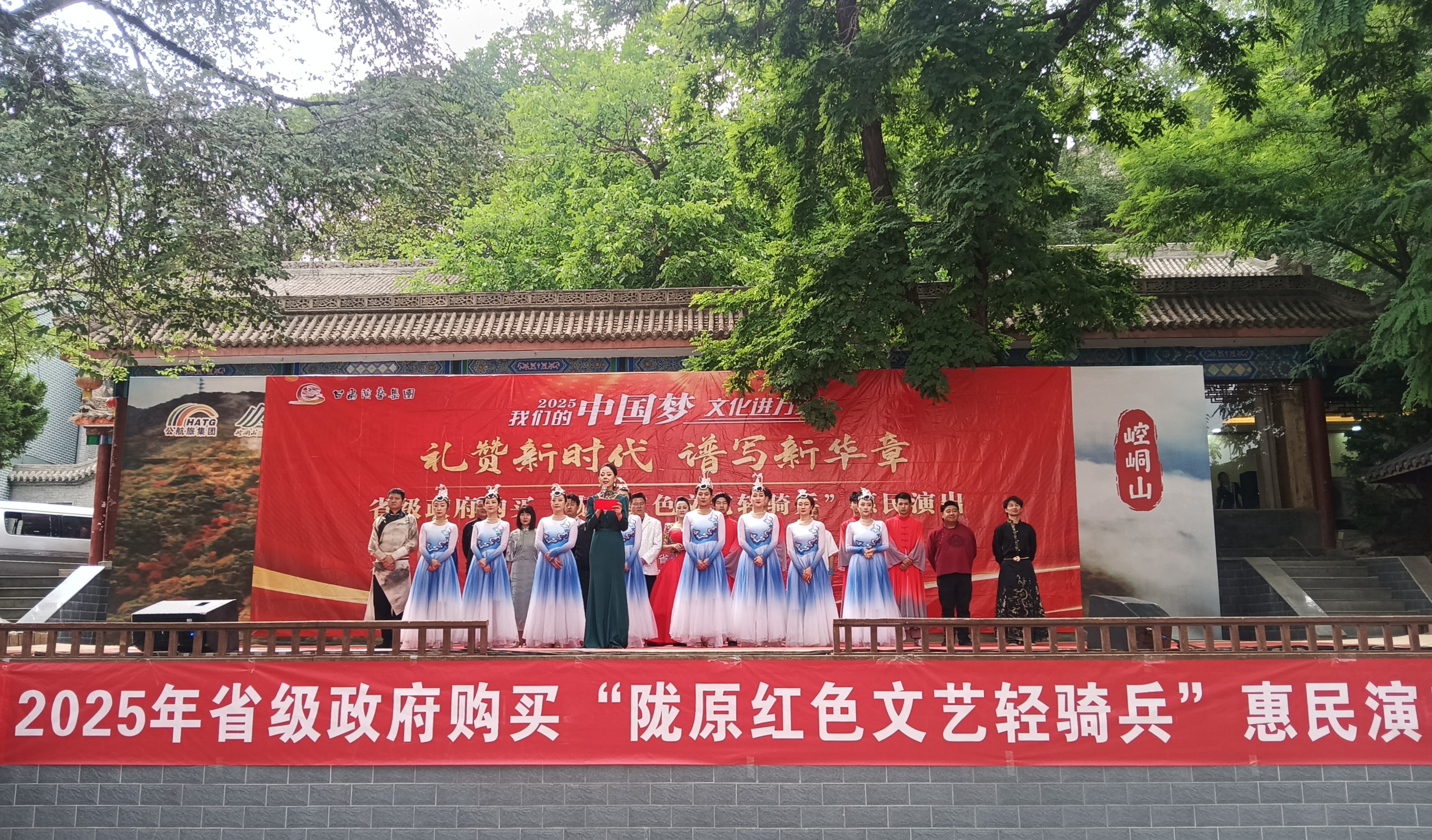 *月**日,演出团队转战崆峒山景区中台,分别在上午**时和下午**:**呈现两场“红色文艺轻骑兵”专场演出。新增节目快板《大美甘肃》以诙谐生动的语言展现甘肃风土人情,《共筑中国梦》悠扬旋律为青山绿水平添色彩。