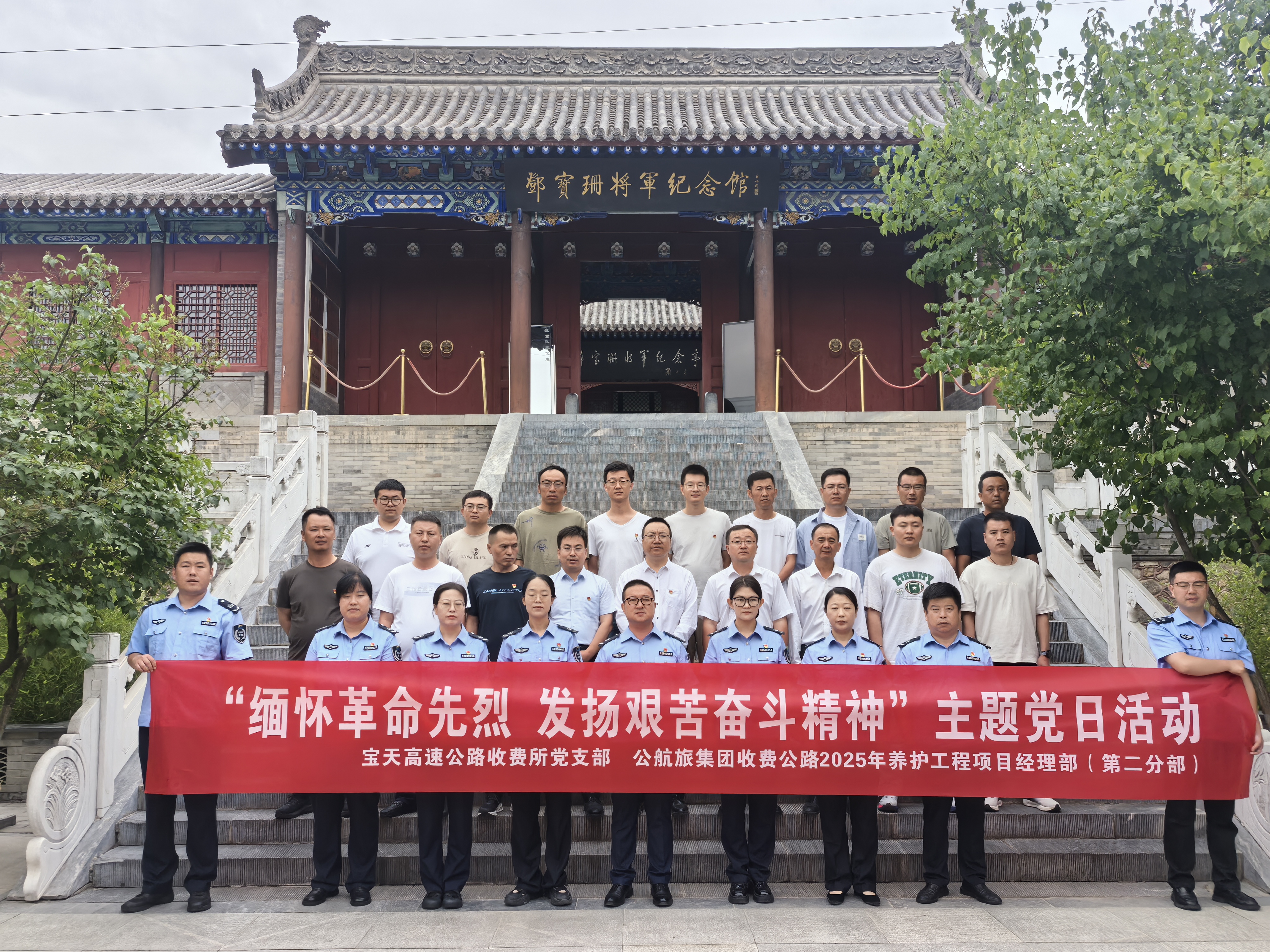 *月**日,远大公司养护工程项目经理部(第二分部)联合宝天高速公路收费所党支部,共同前往邓宝珊将军纪念馆,开展“缅怀革命先烈,发扬艰苦奋斗精神”主题党日活动。