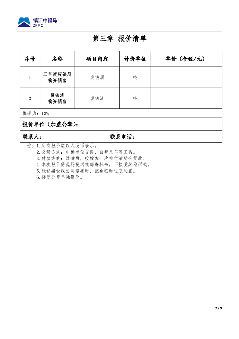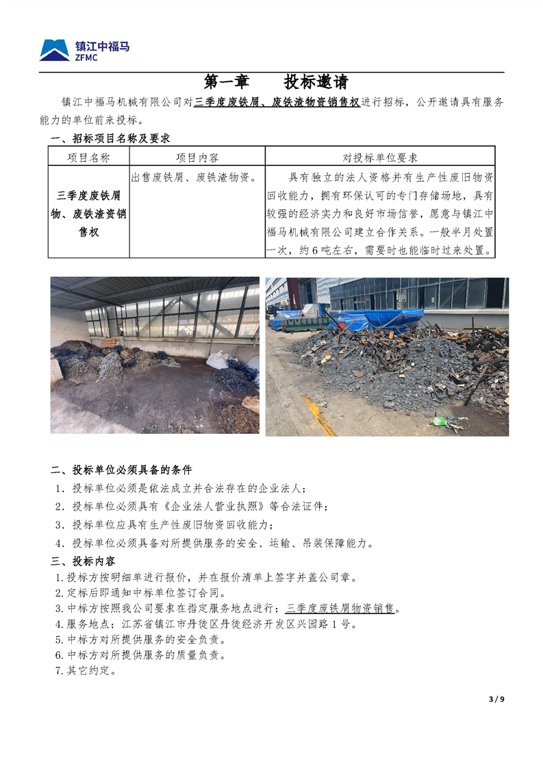[国机集团]镇江中福马三季度废铁屑、废铁渣物资销售