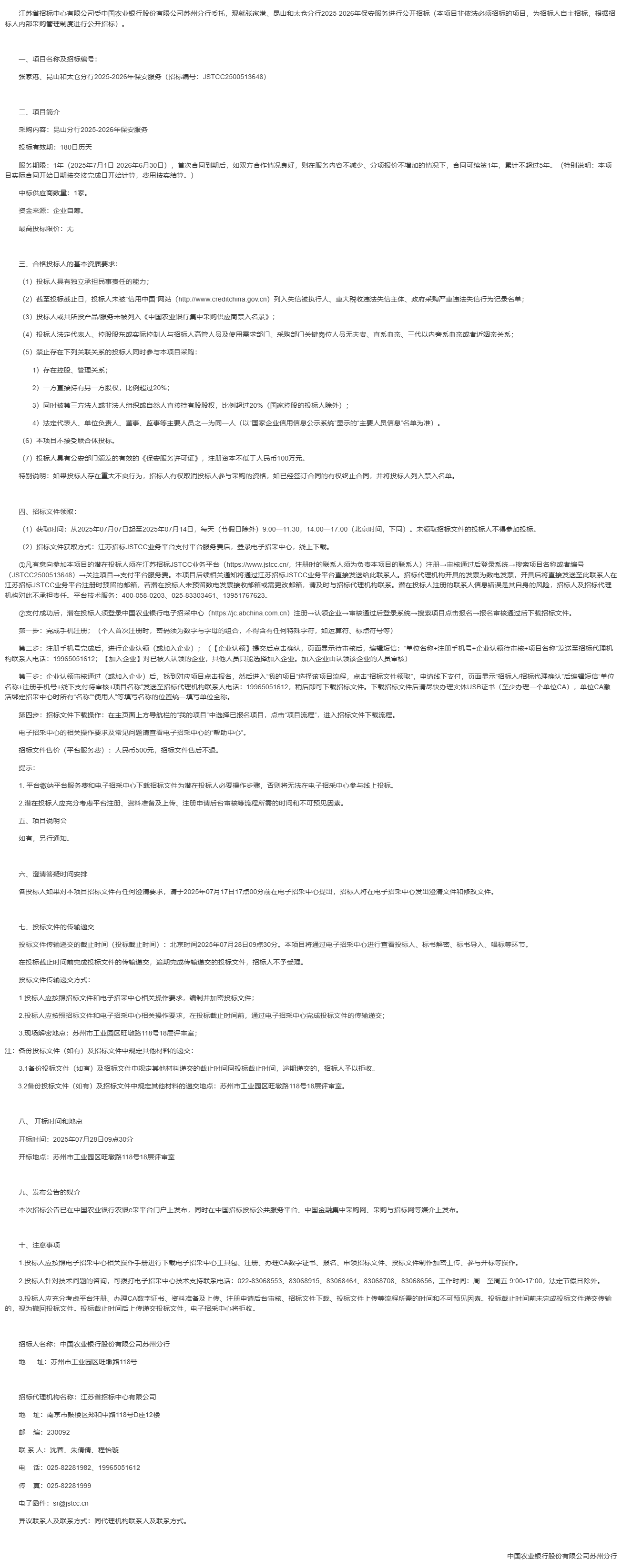 张家港、昆山和太仓分行*********年保安服务招标公告