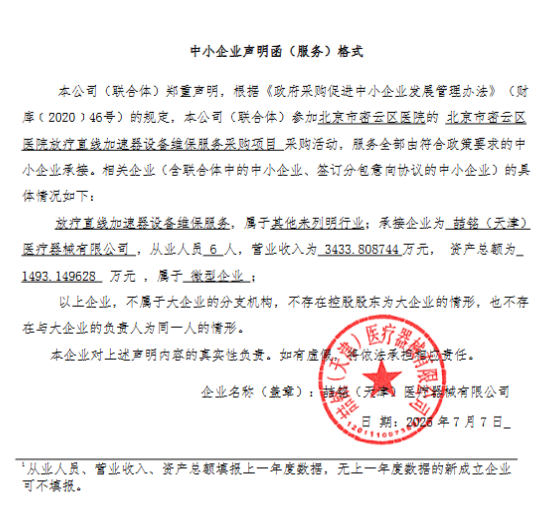 二、项目名称:北京市密云区医院放疗直线加速器设备维保服务采购项目