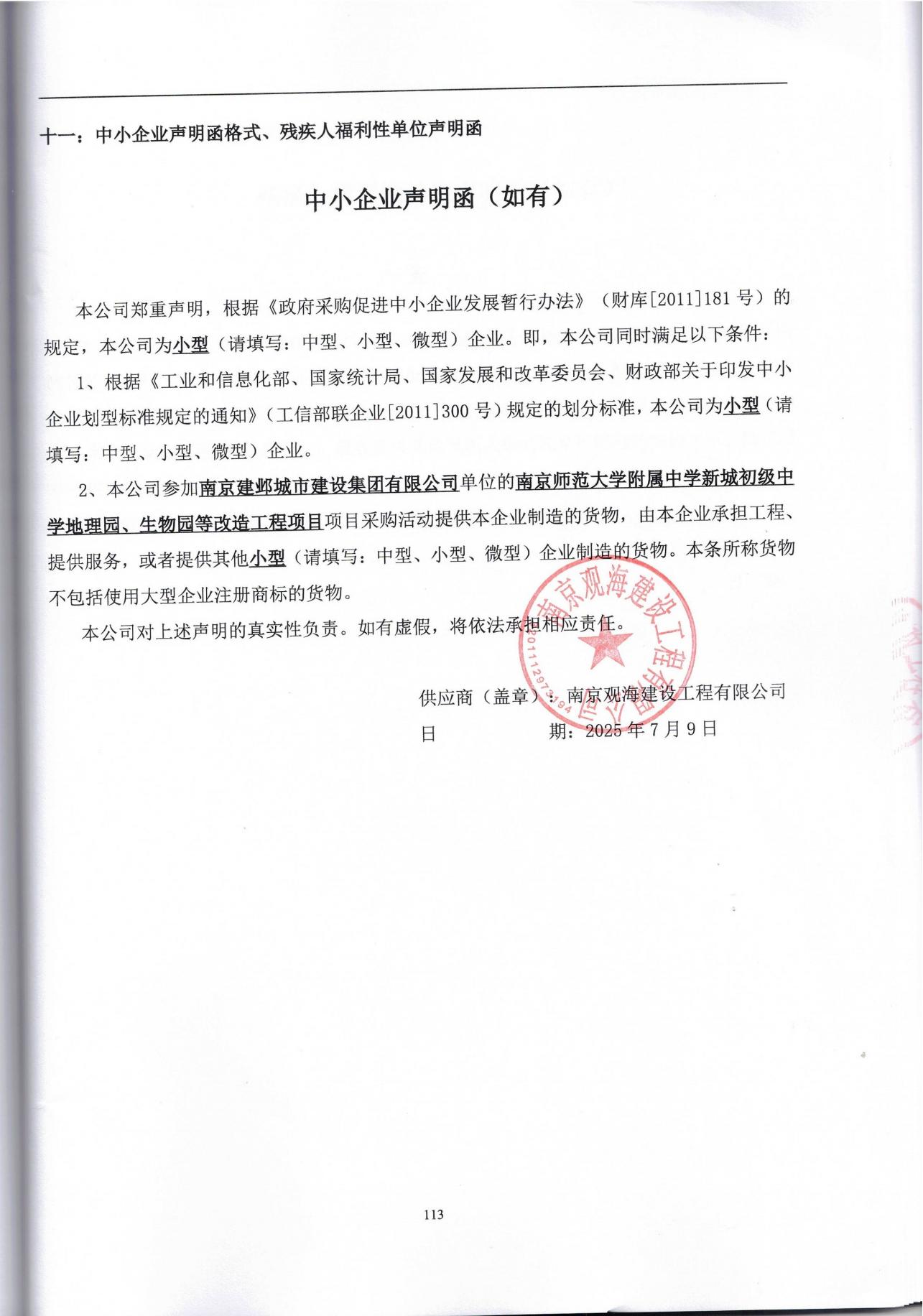 供应商名称:南京观海建设工程有限公司
