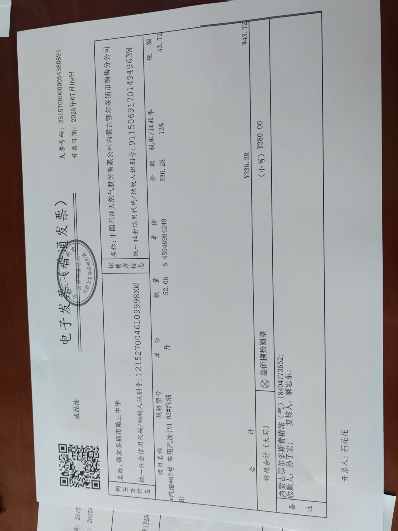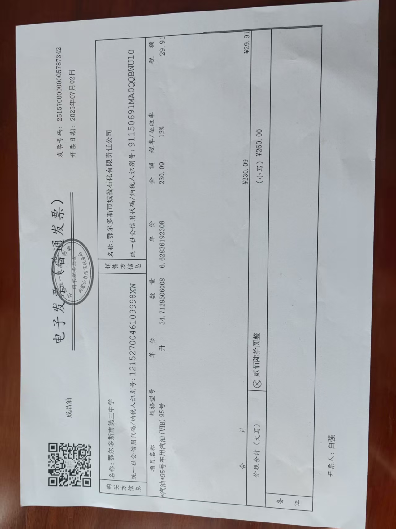 二、合同名称:鄂尔多斯市第三中学采购公务用车汽油
