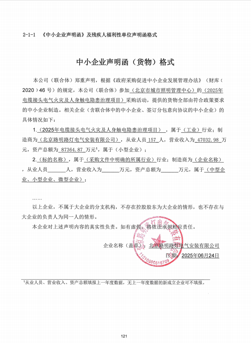 中标成交供应商名称:北京路明路灯电气安装有限公司