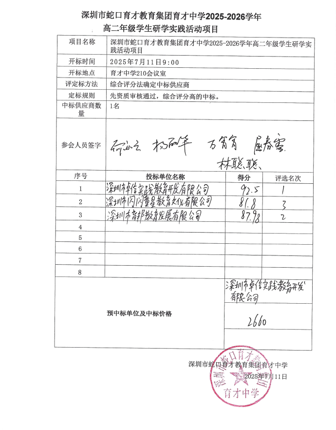 深圳市蛇口育才教育集团育才中学2025-2026学年高二年级学生