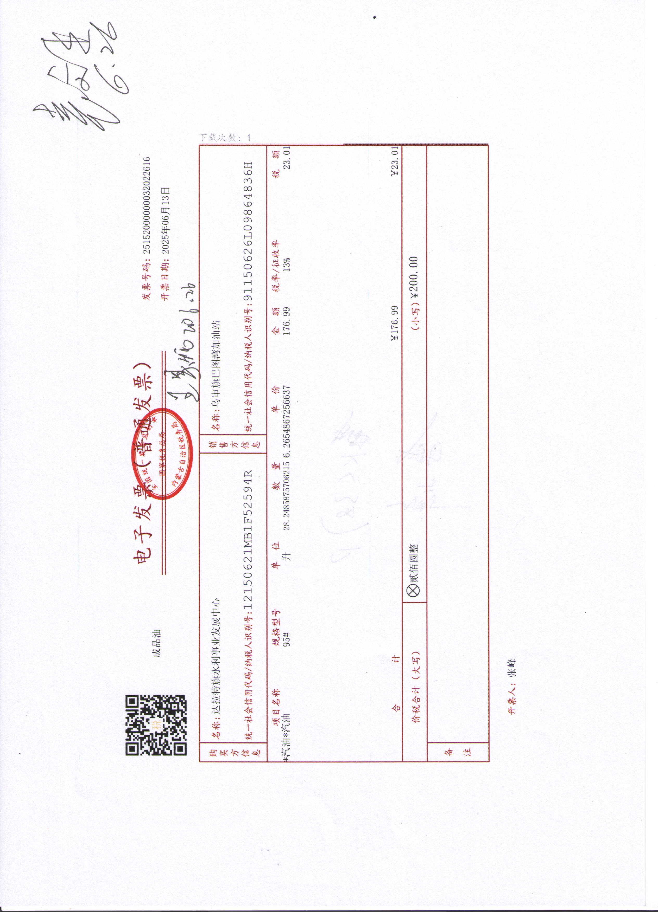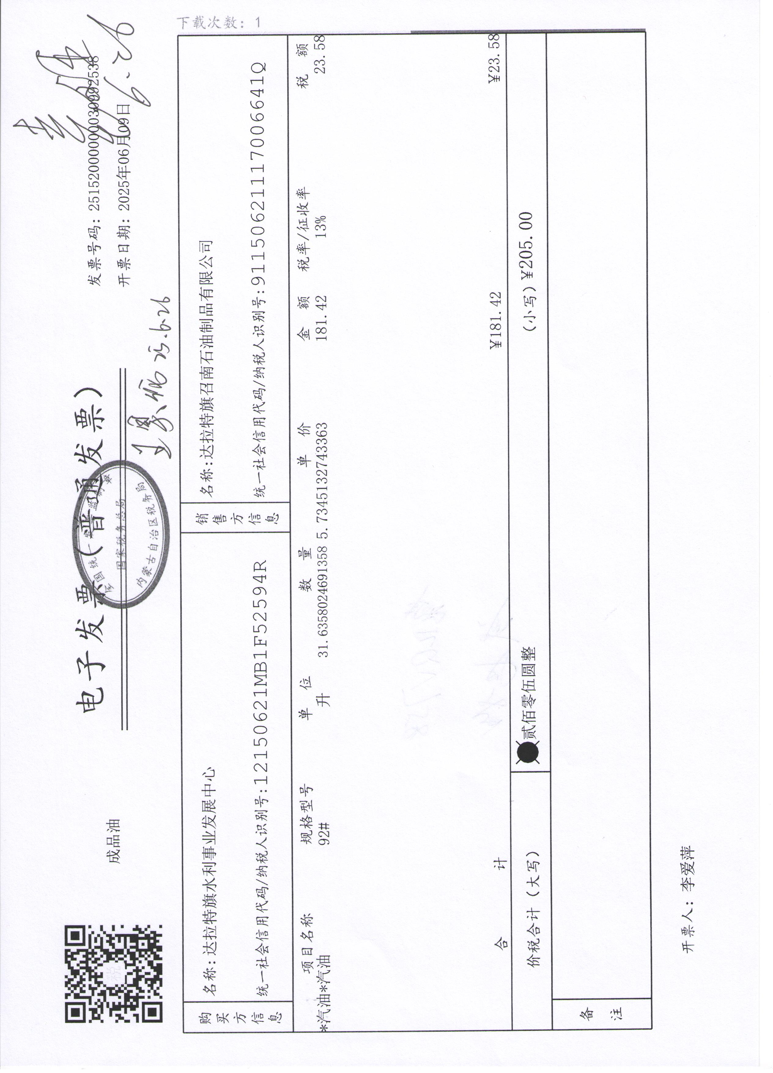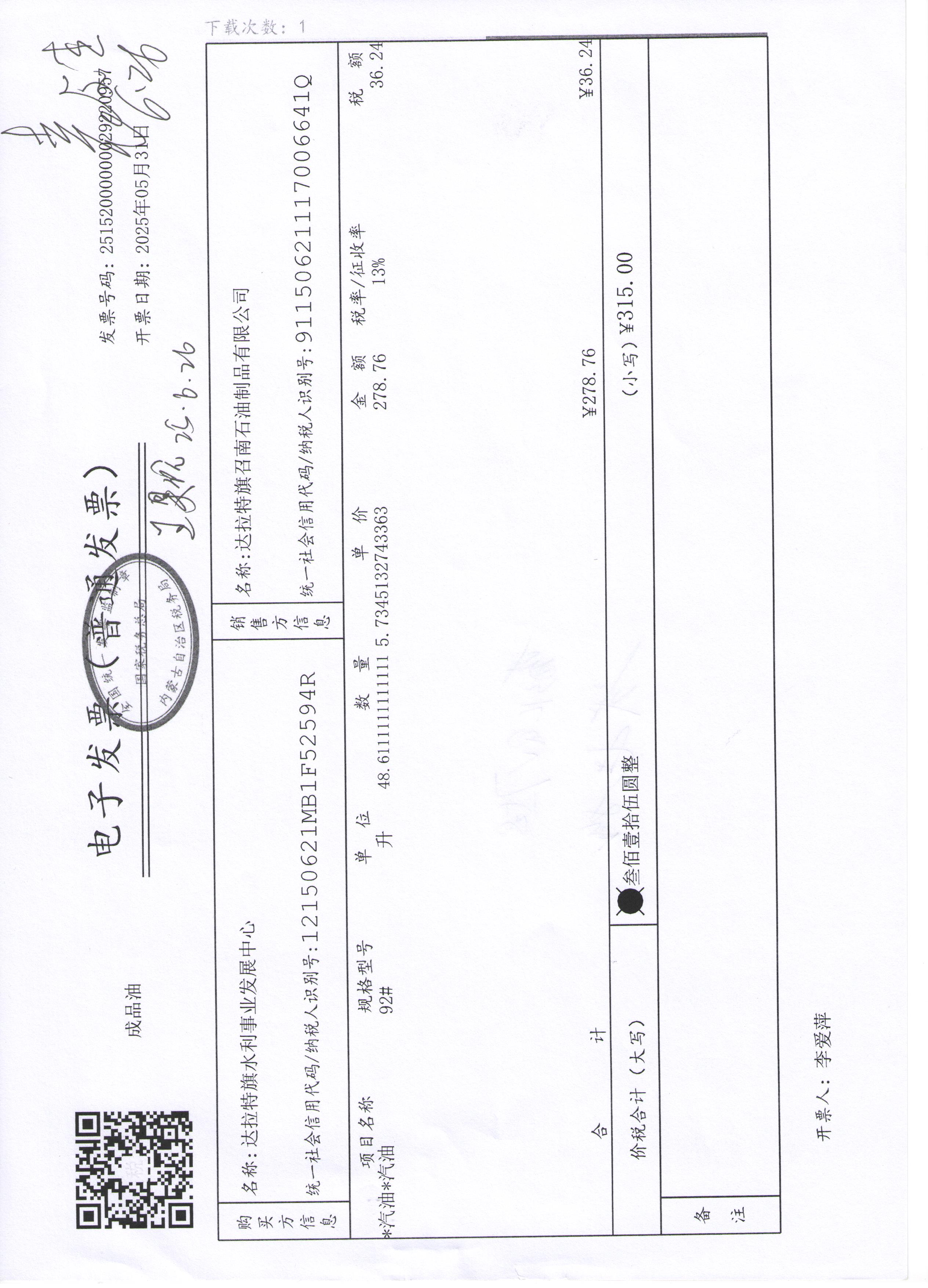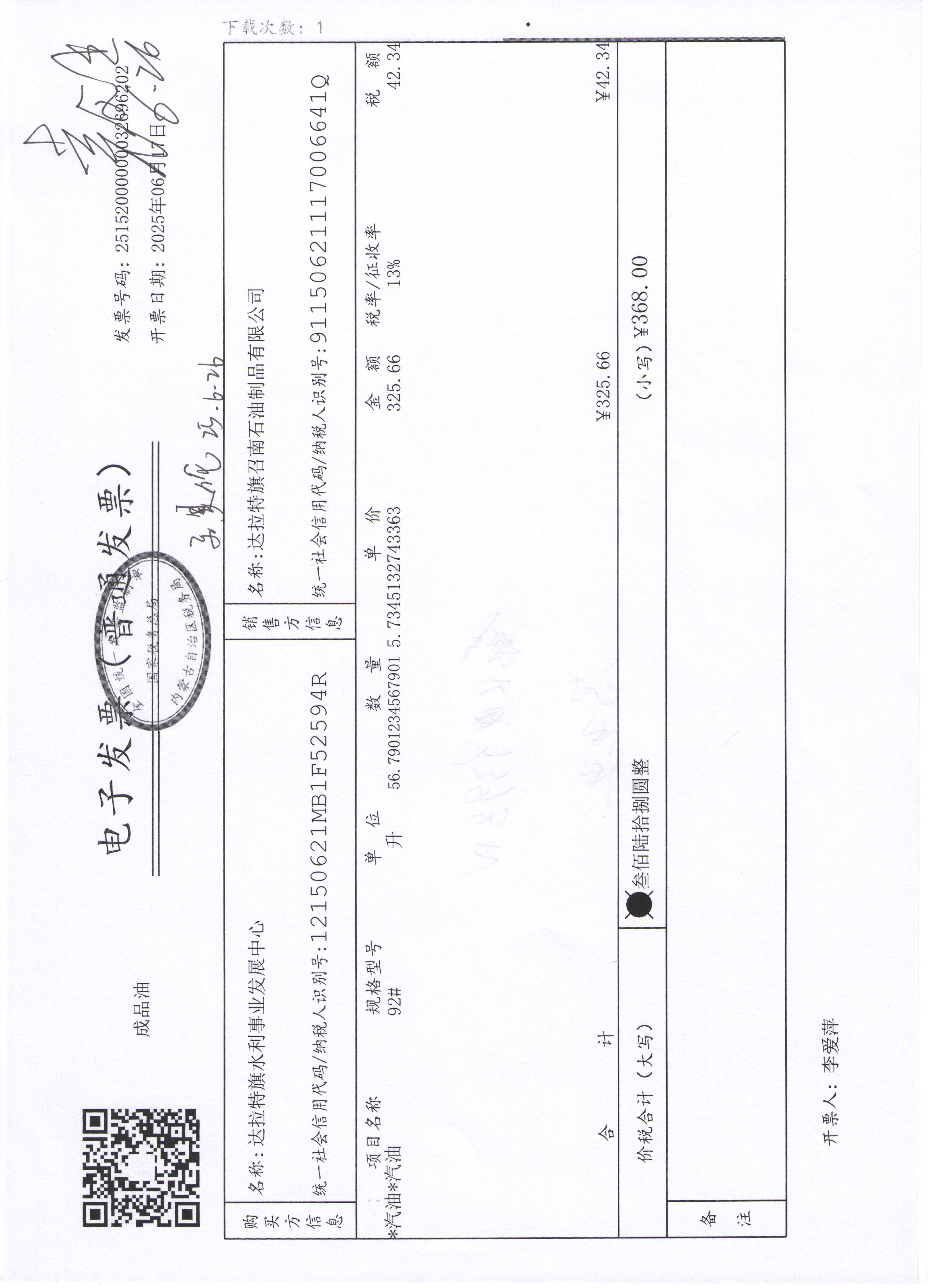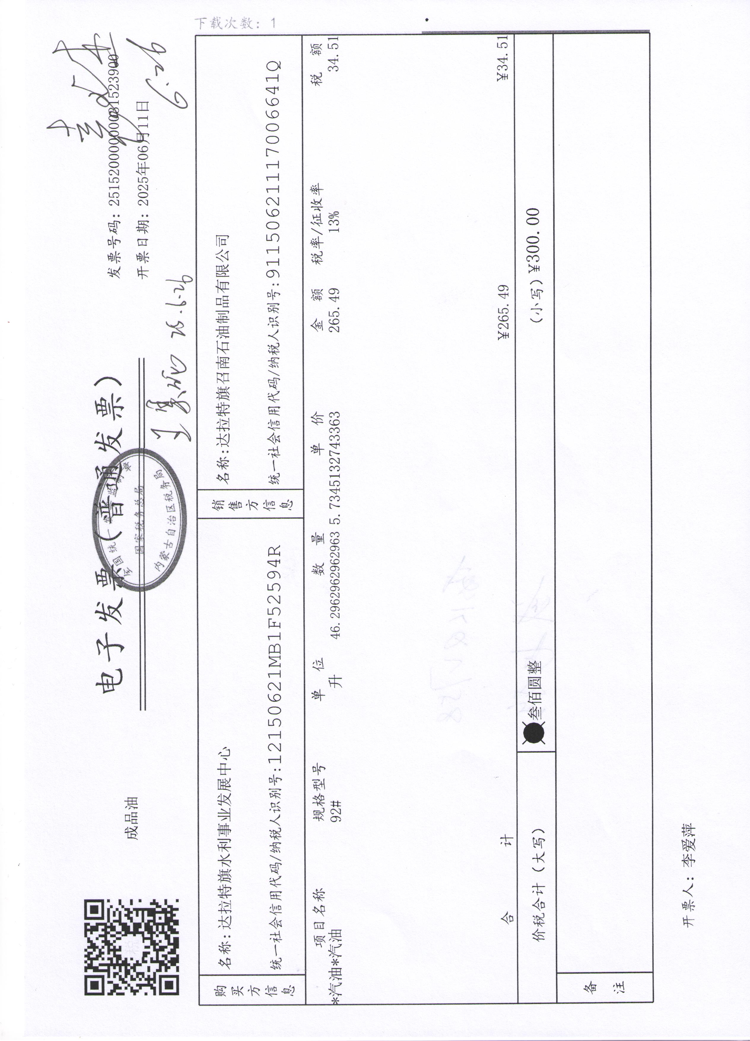 达拉特旗水利事业发展中心2507140024公务用车油燃费(高利平)政府采购合同公告