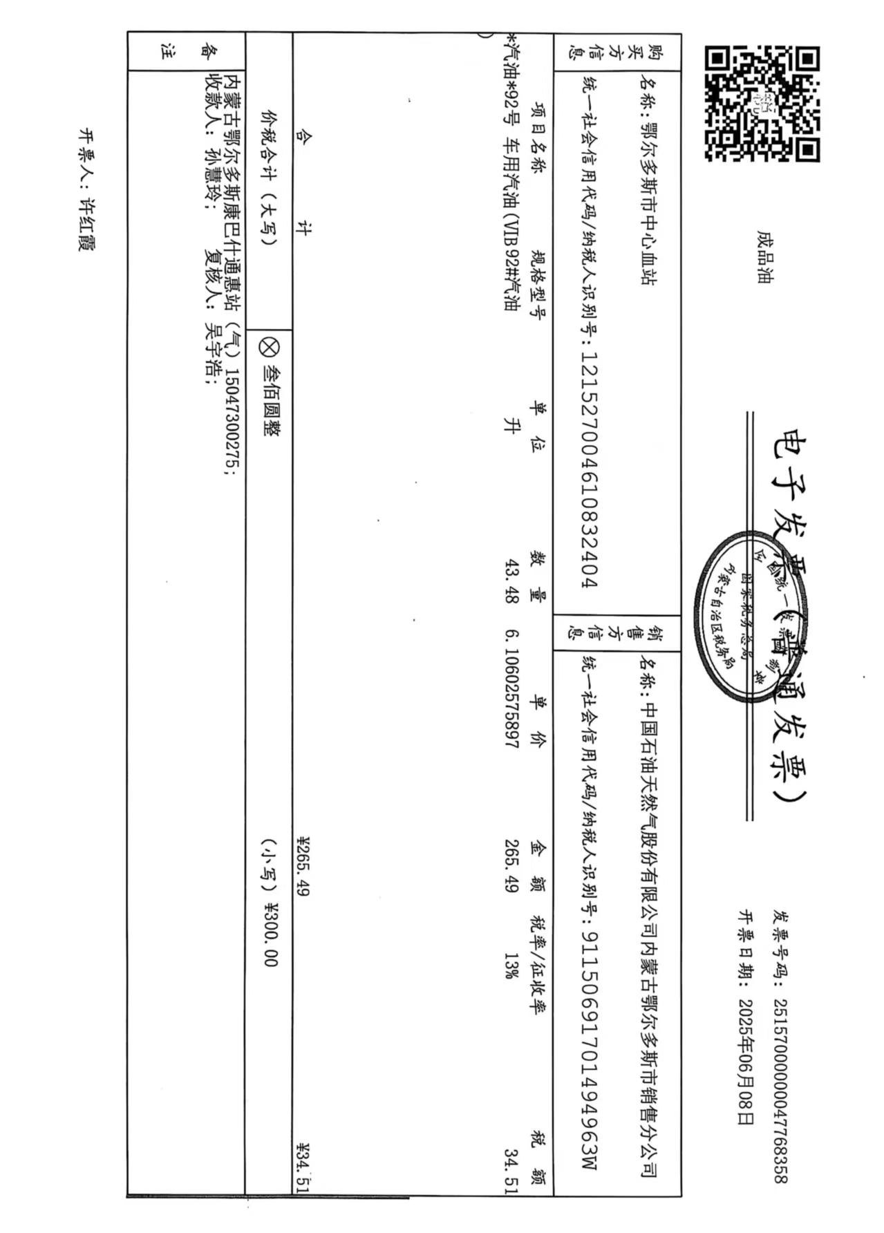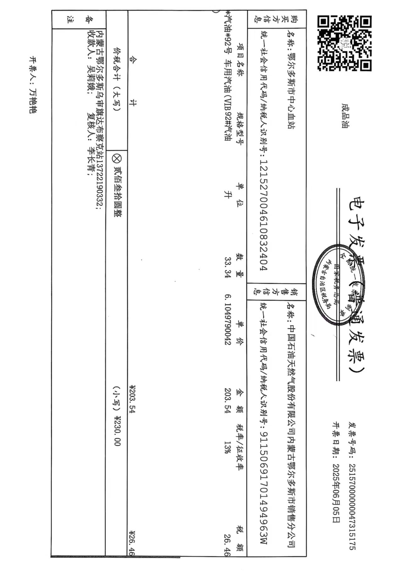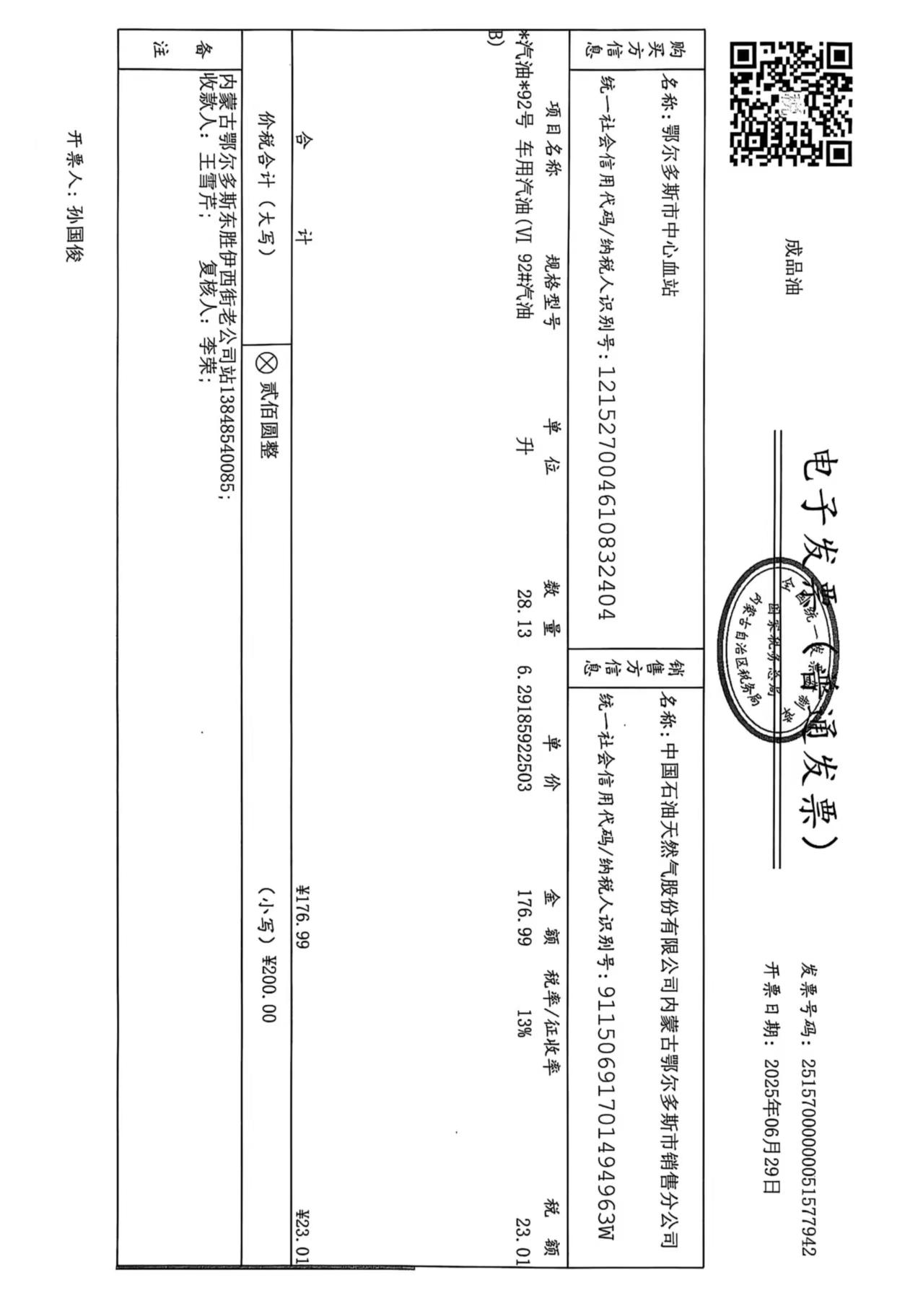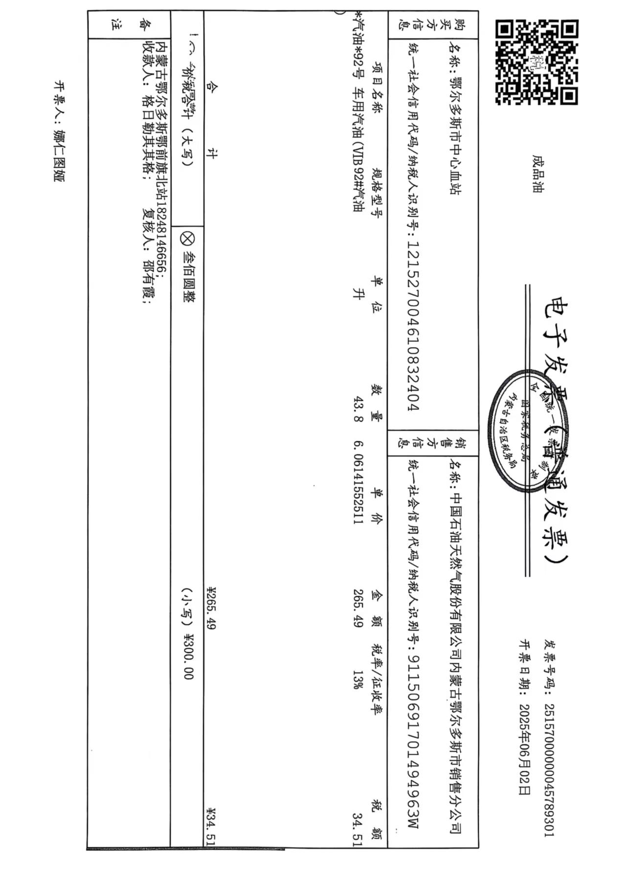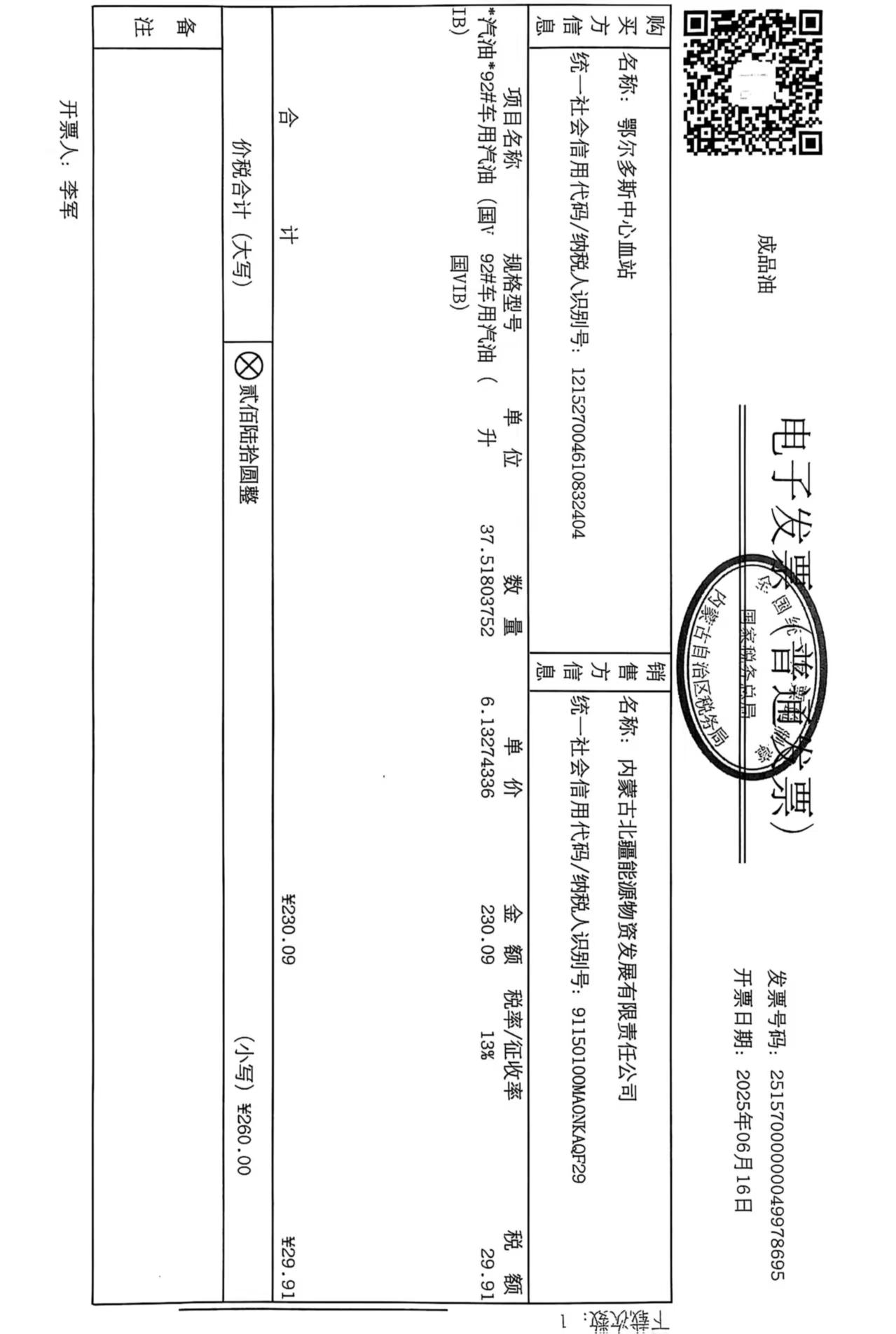 鄂尔多斯市中心血站蒙******车辆六月用油政府采购合同公告