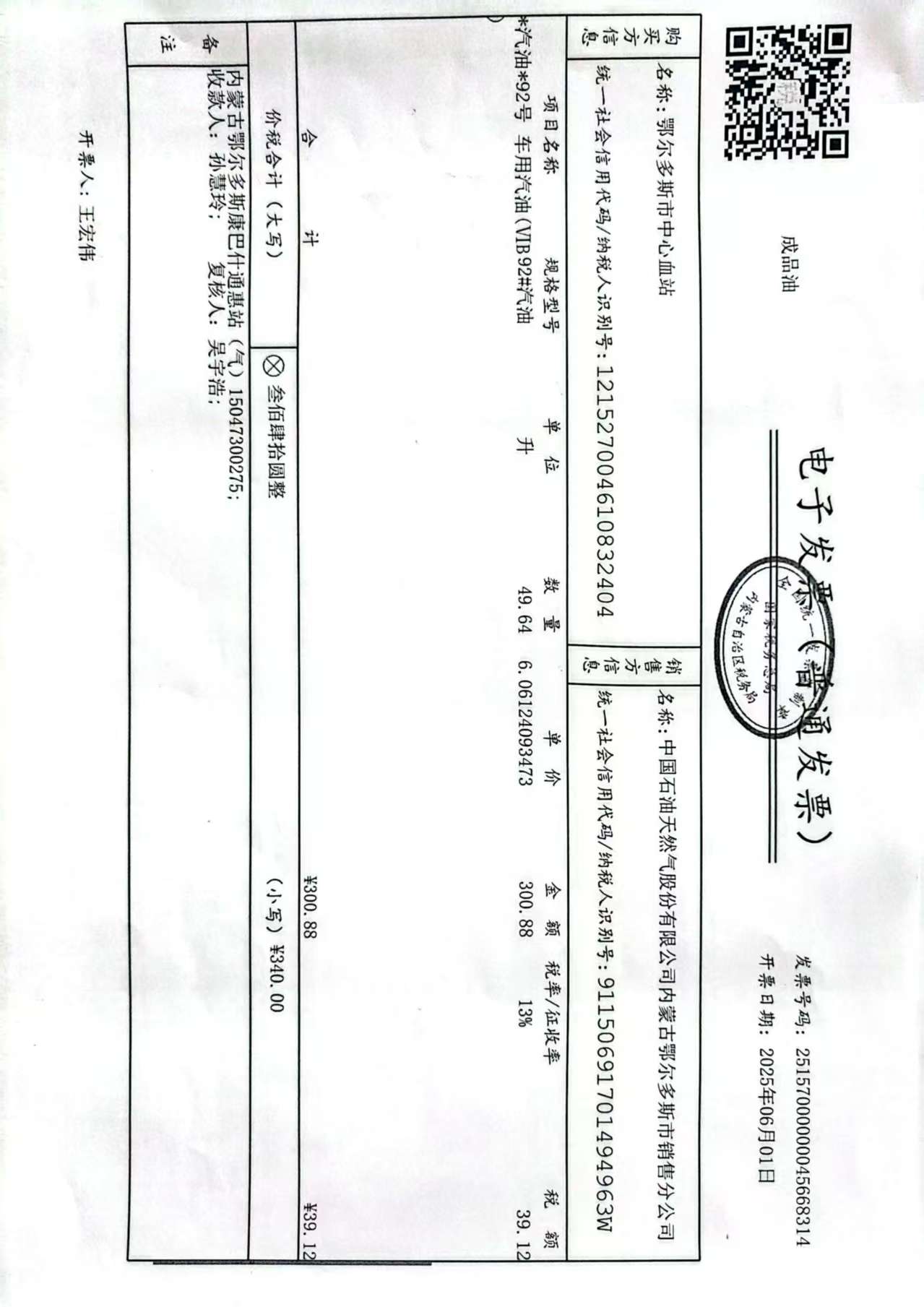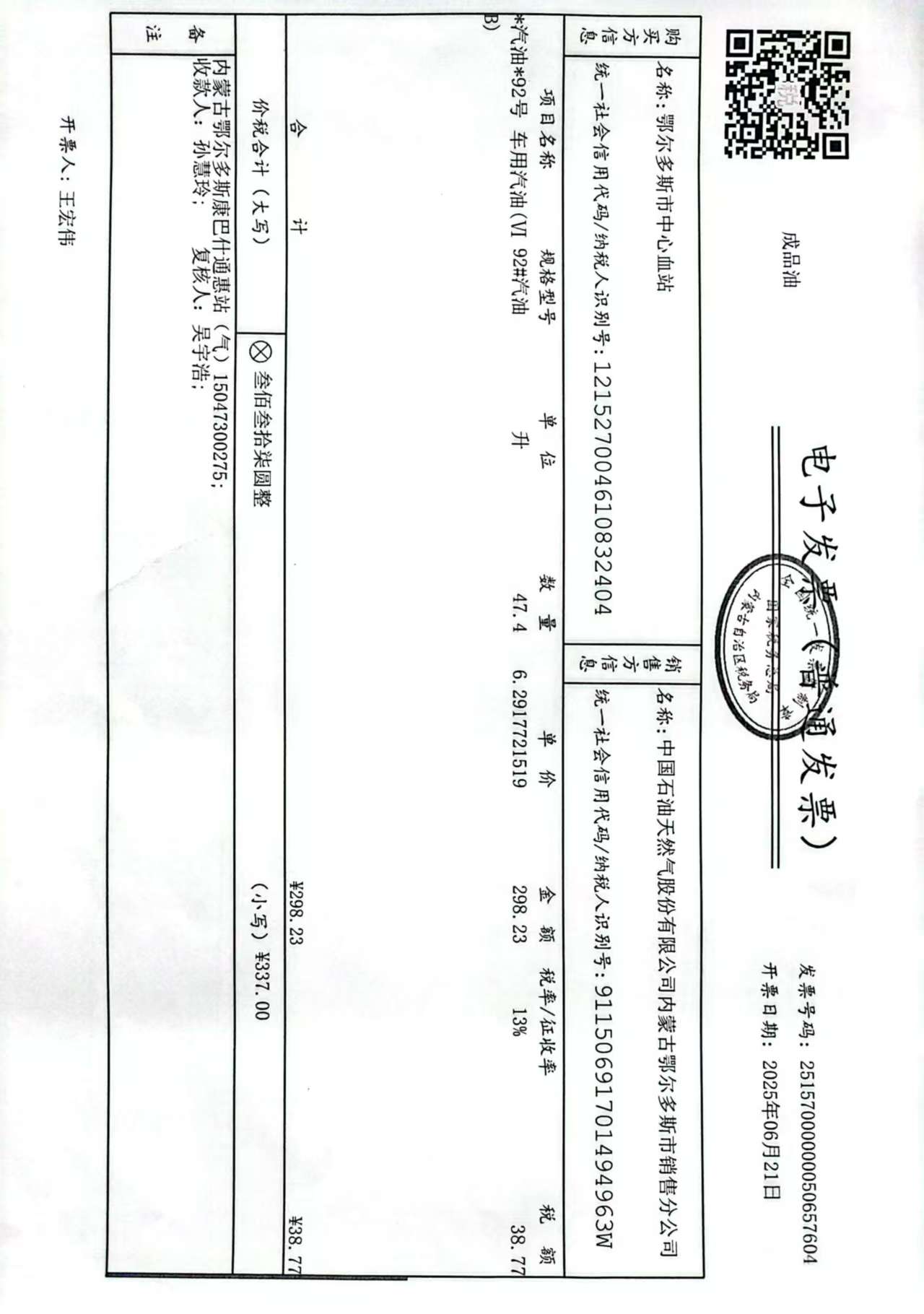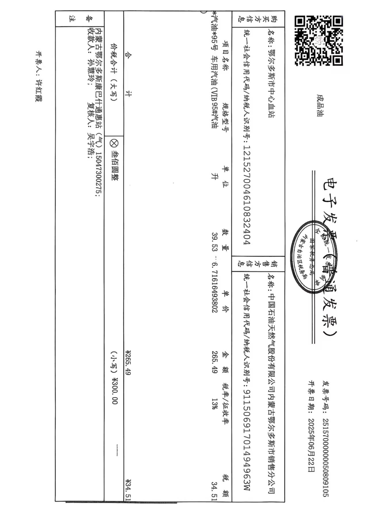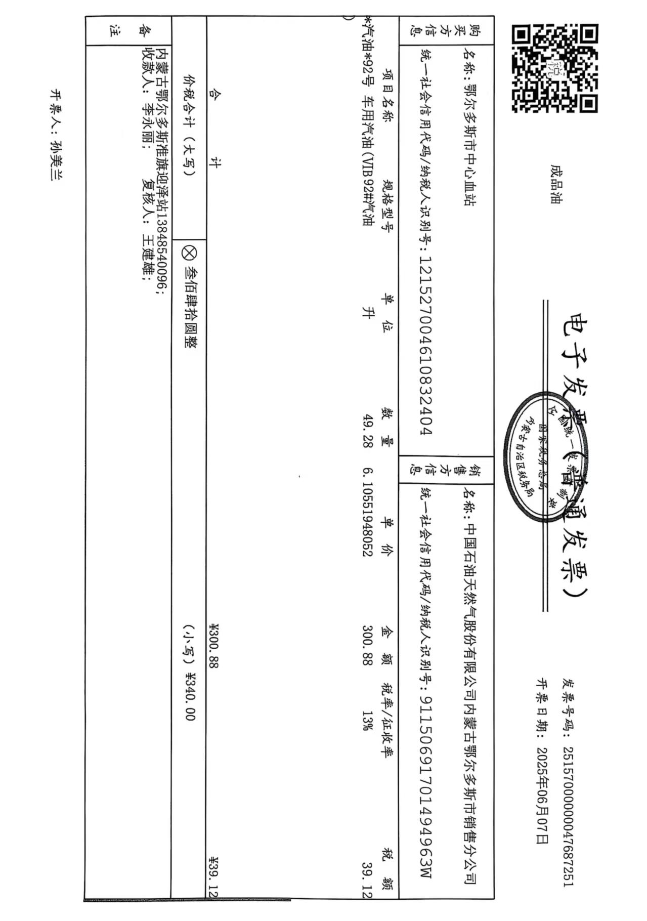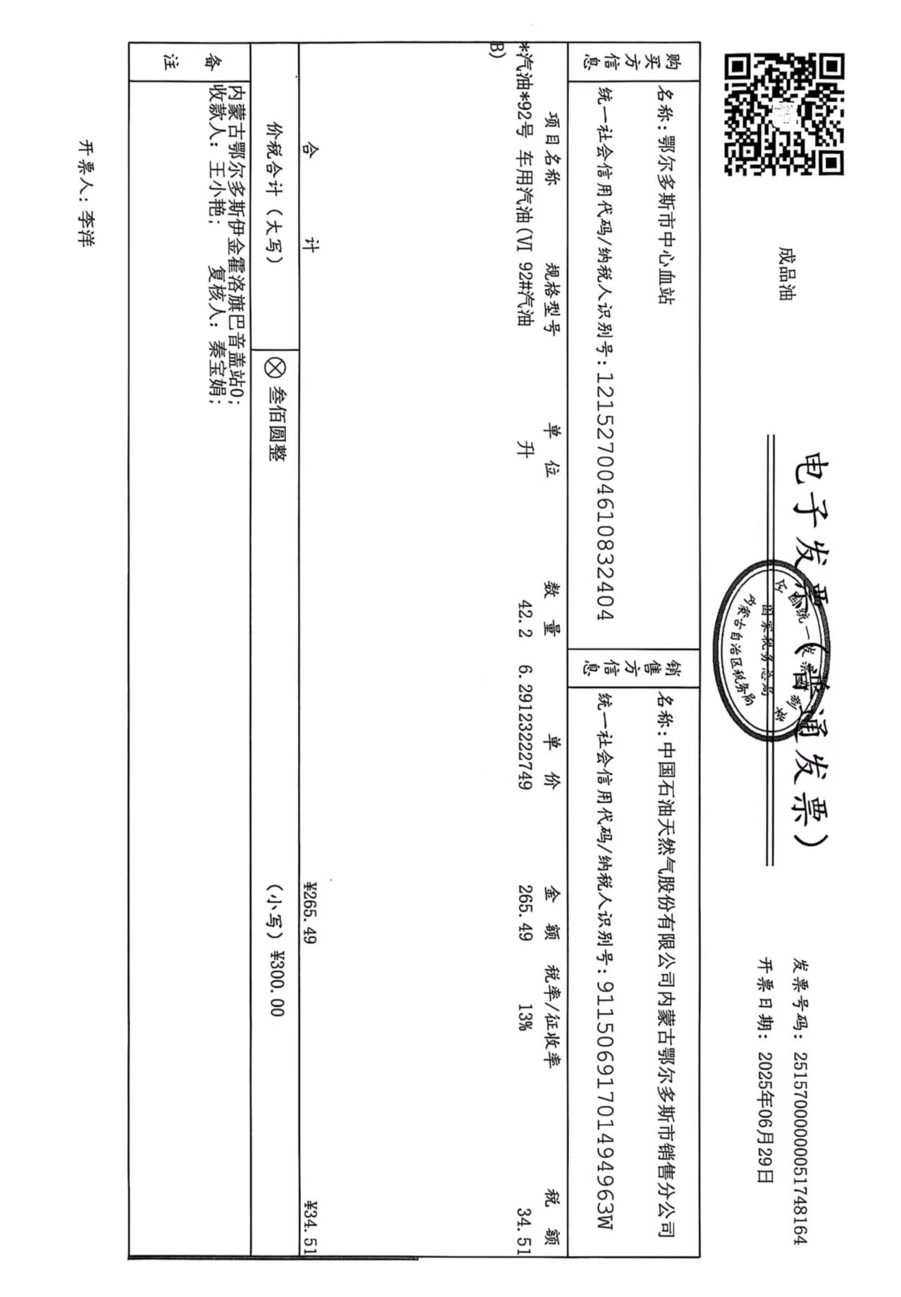 鄂尔多斯市中心血站蒙******车辆六月用油政府采购合同公告