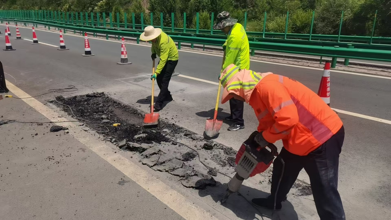 “细”护路面,筑牢道路“筋骨梁”。夏季高温易引发路面车辙、暴雨易造成边坡冲刷,各养护组聚焦路面健康与汛期安全,全面铺开精细化养护作业。针对巡查发现的路面裂缝、坑槽等病害,严格按照“一病一策”制定修复方案,及时采用沥青热补、灌缝等工艺精准处置,保障路面平整;集中对桥梁伸缩缝进行清淤除尘和应急修补,确保梁体伸缩自如,保障通行安全顺畅;及时清理排水沟内淤泥杂物,保障雨天排水通畅;更换维修中央护栏板及防眩板,保持隔离防护设施完整牢固。同时,加密绿化修剪频次,对遮挡标志标牌、影响行车视线的灌木、树枝进行修剪整形,确保道路行车视野开阔,保障行车安全。