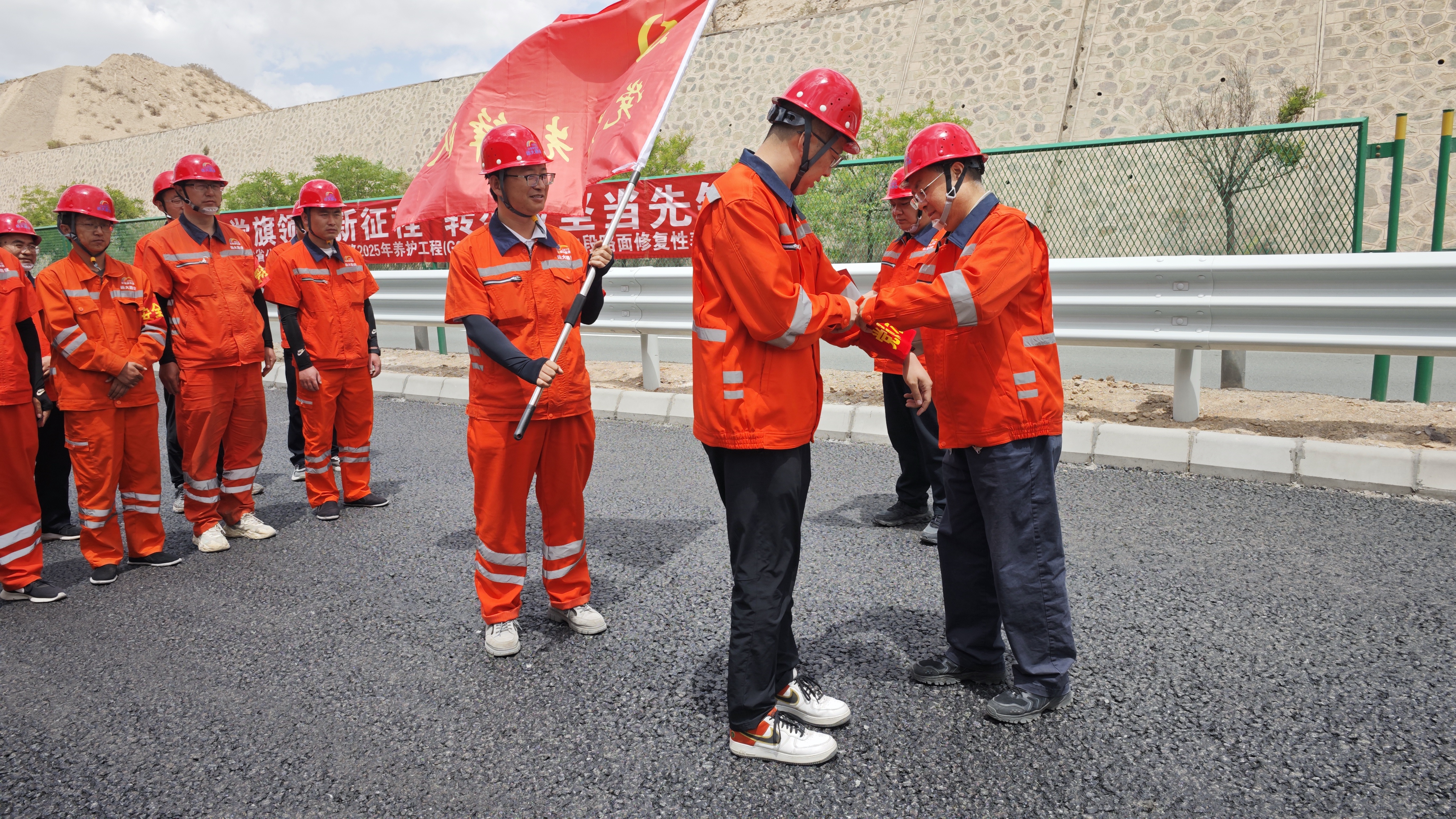 在转型首年,**京藏高速刘白段养护项目被赋予重任,成为公司转型的试验田。面对这些挑战,刘白项目部充分发挥党建引领作用,将党的政治优势转化为转型发展动能。通过早晚会政策解读、党员职工“一对一”谈心以及召开座谈会、现场会等多维举措,逐步消除了团队的转型观望情绪,凝聚起“向养护专业化进军”的思想共识。在项目现场,“党员冲锋在前,我们干劲更足”成为一线建设者最响亮的口号,为国企改革攻坚筑牢了坚实的思想根基,红色引擎在交通养护战场上持续释放强大动能。