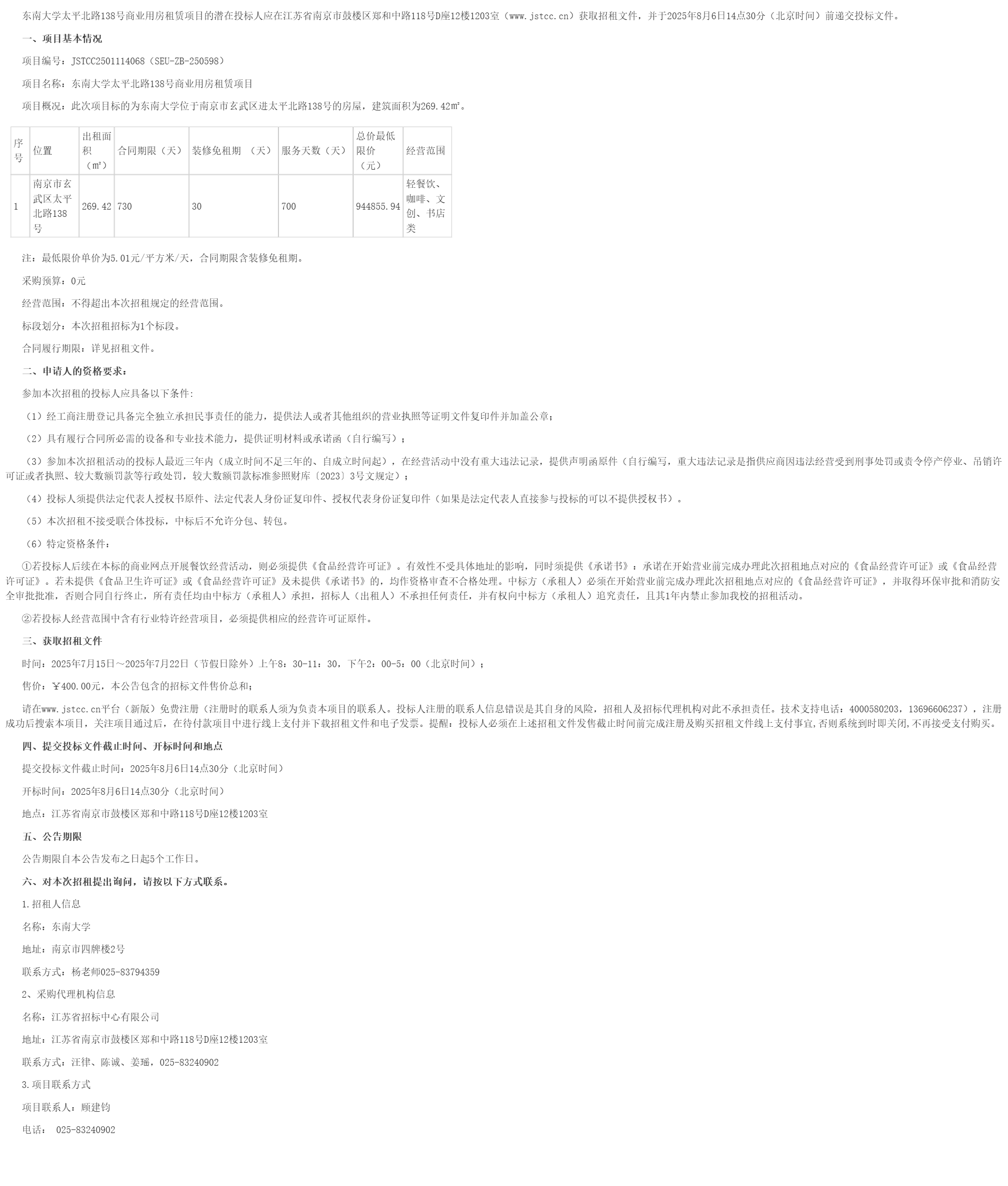 项目名称:东南大学太平北路***号商业用房租赁项目