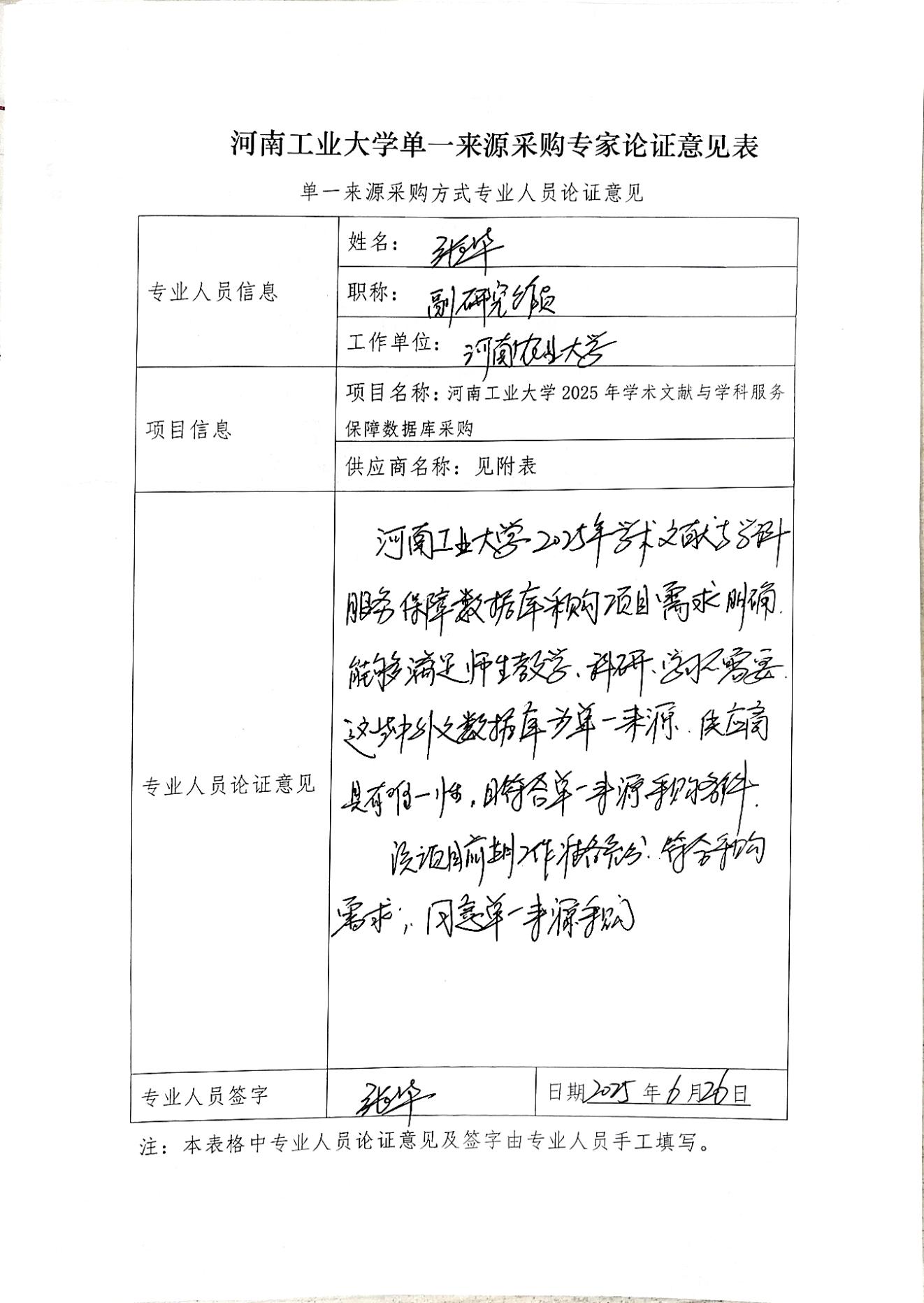 张华 | 河南农业大学图书馆 | 副研究馆员 | 专家论证意见附件 |