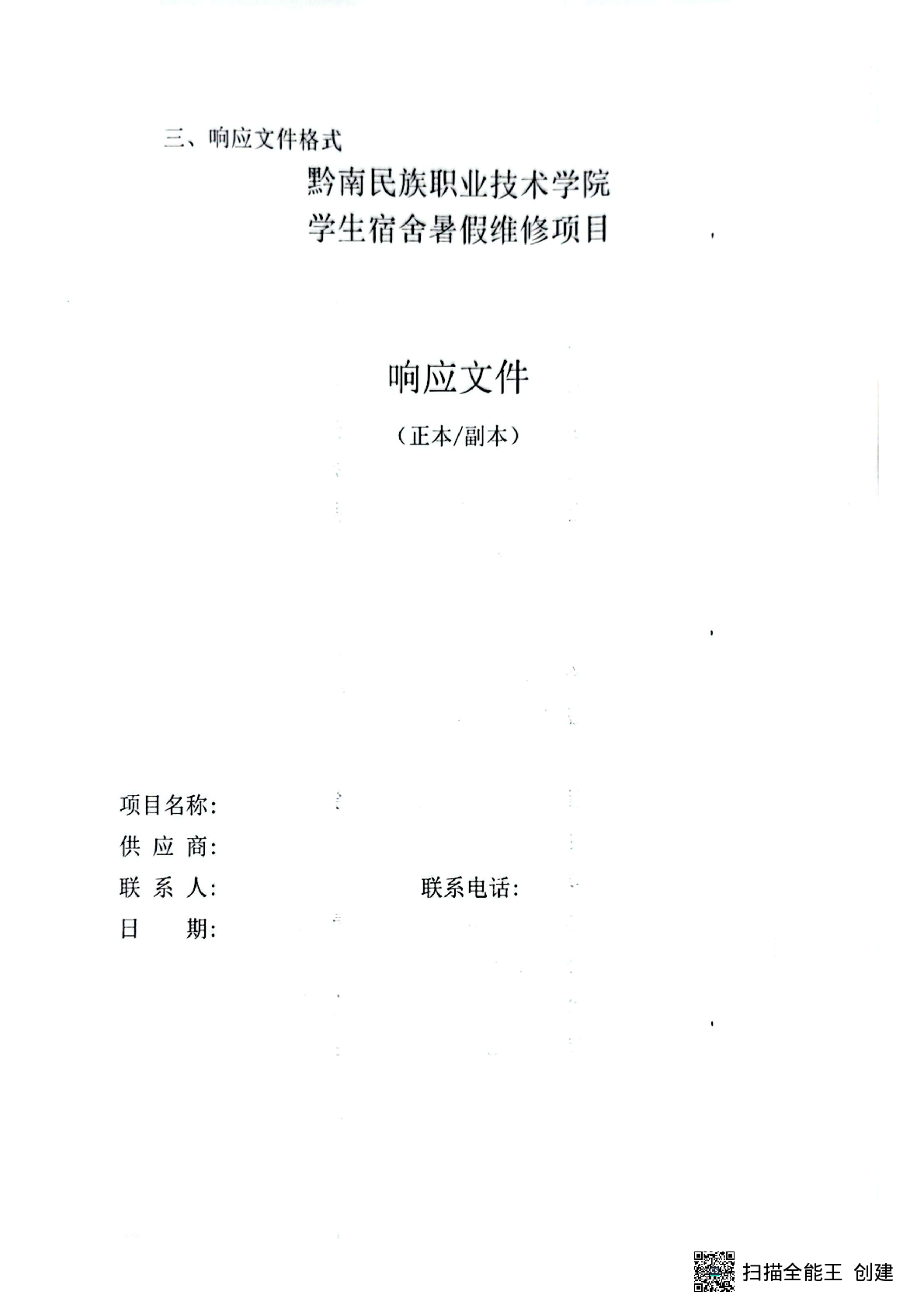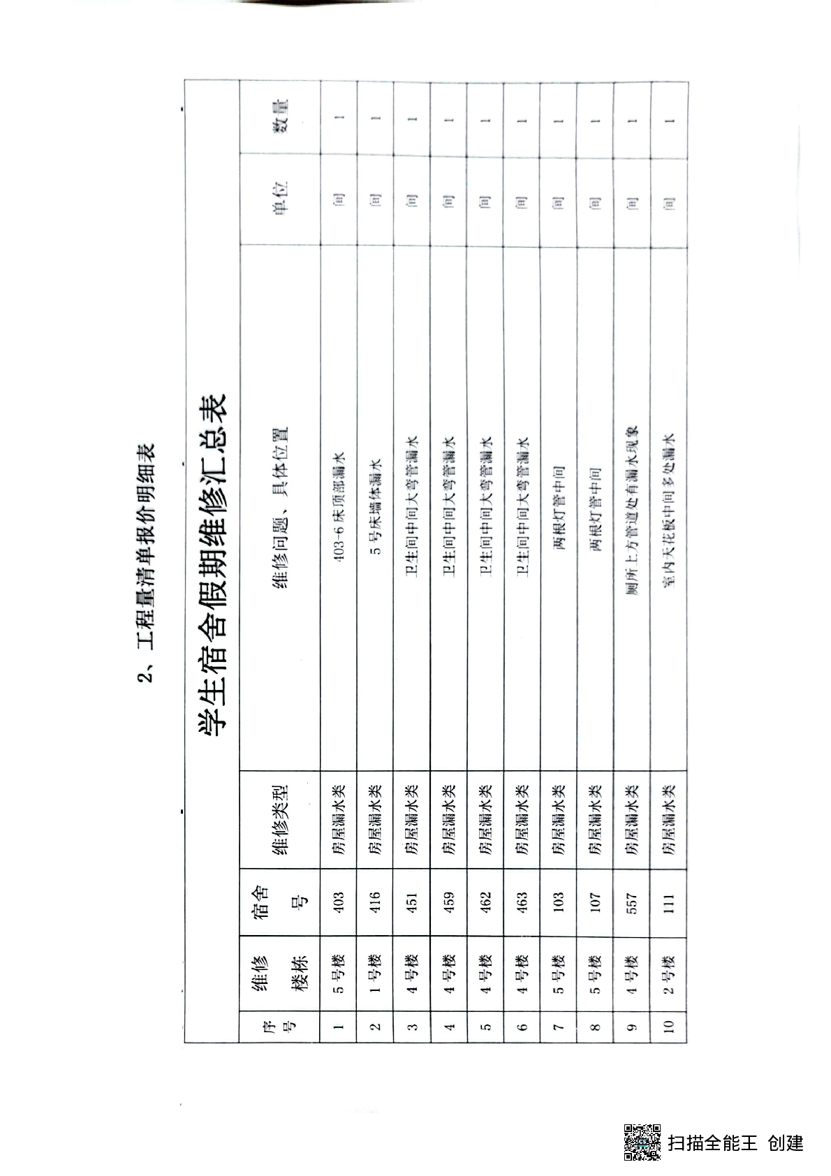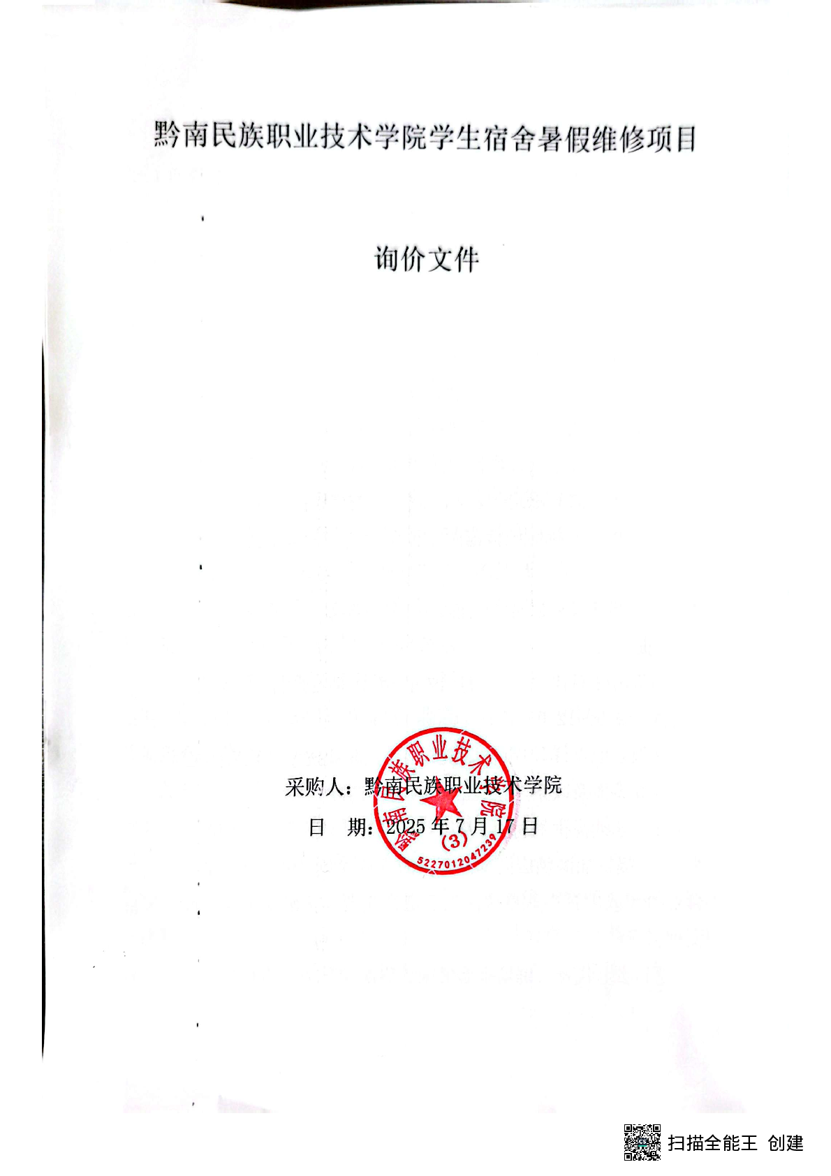黔南民族职业技术学院学生宿舍暑假维修项目询价文件