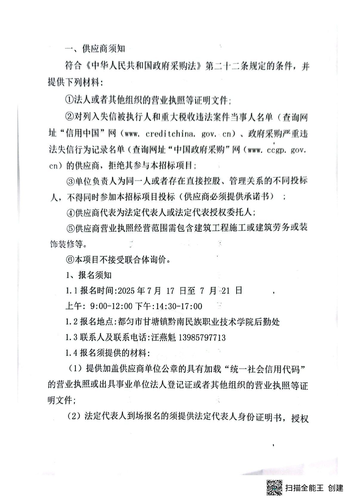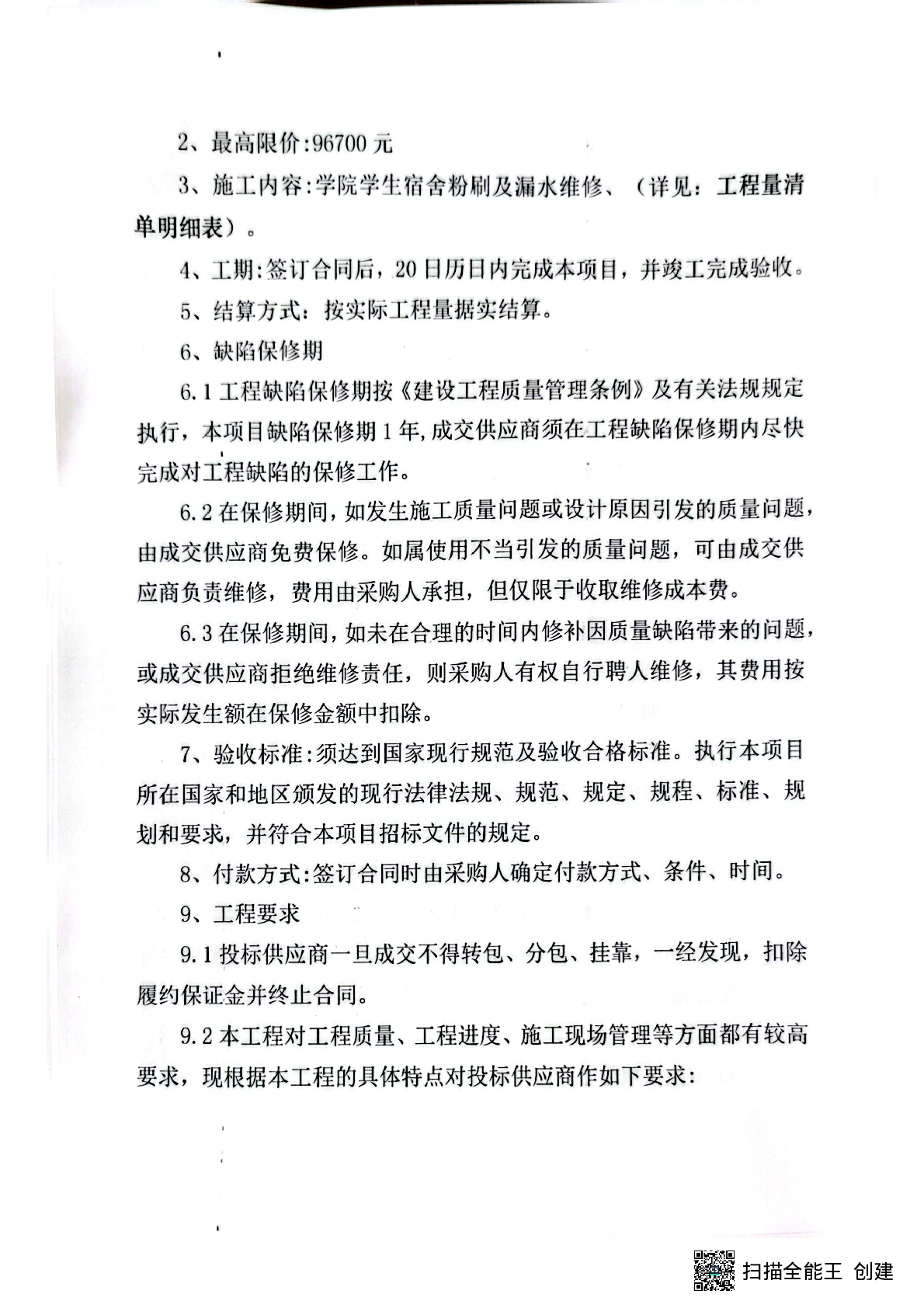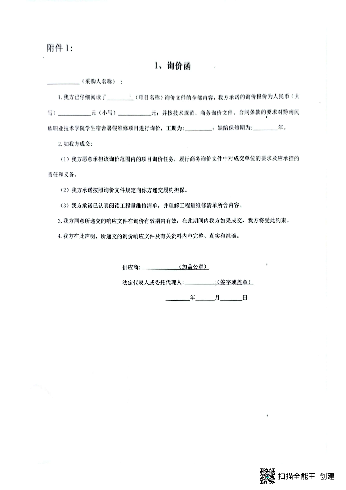 黔南民族职业技术学院学生宿舍暑假维修项目询价文件