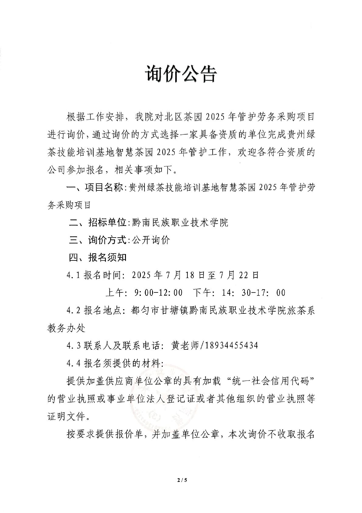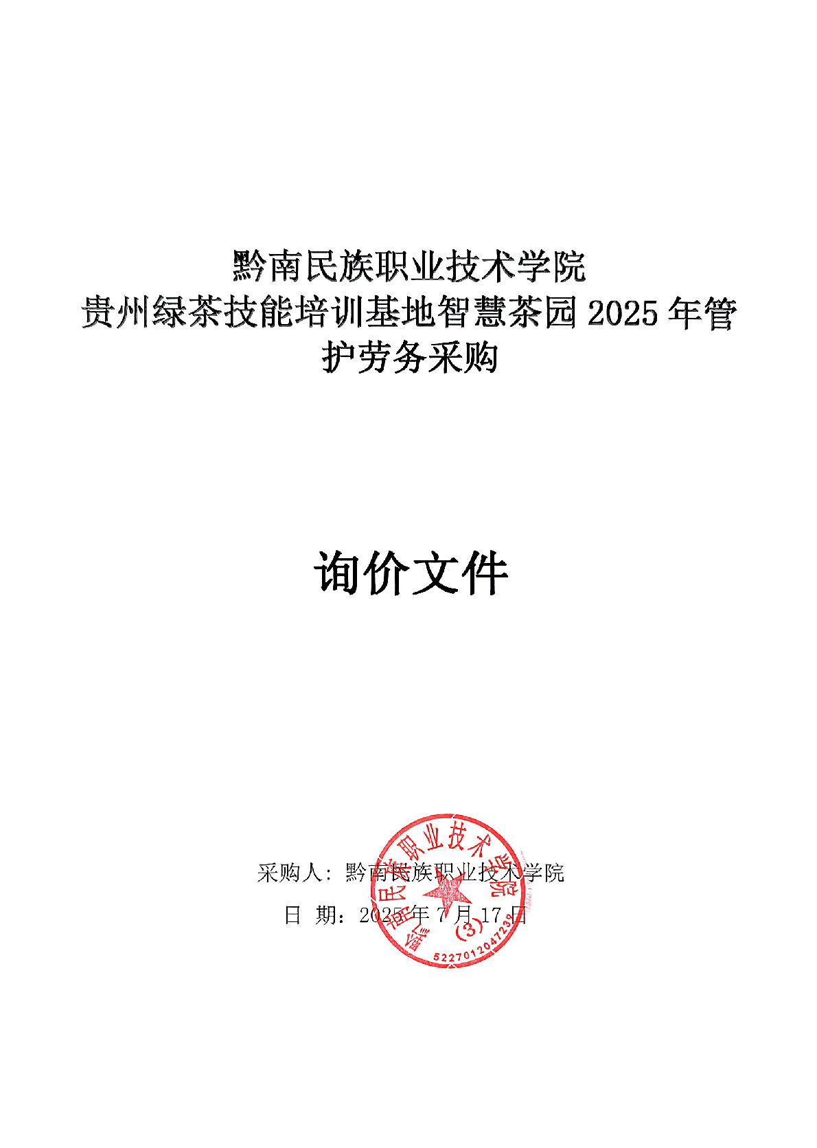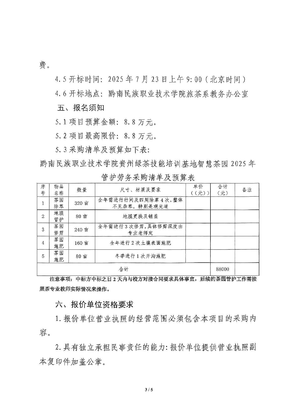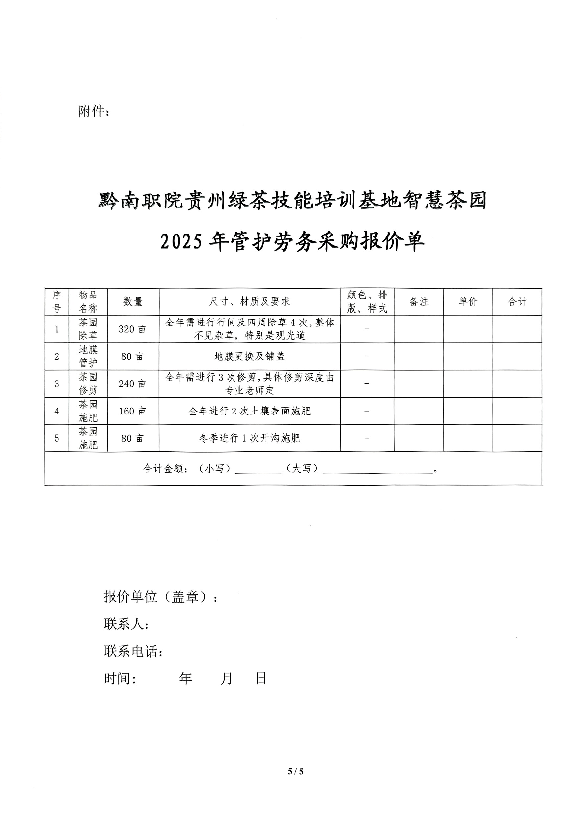 技能培训基地智慧茶园2025年管护劳务采购询价文件