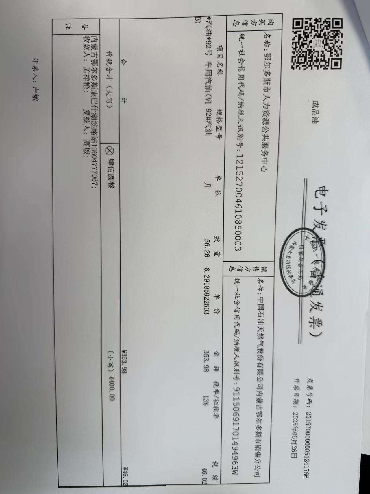 鄂尔多斯市人力资源公共服务中心公务用车加油政府采购合同公告