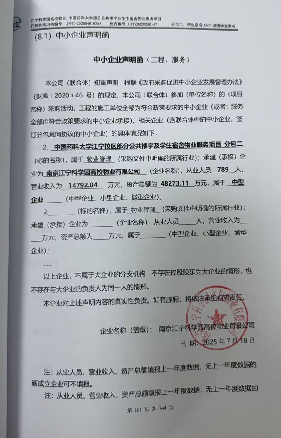 中标供应商名称:南京江宁科学园高校物业有限公司