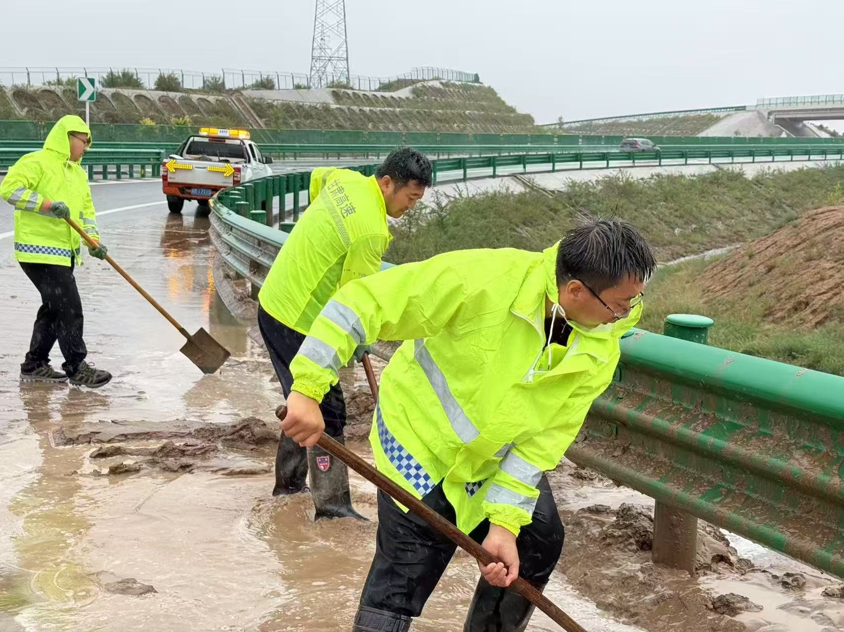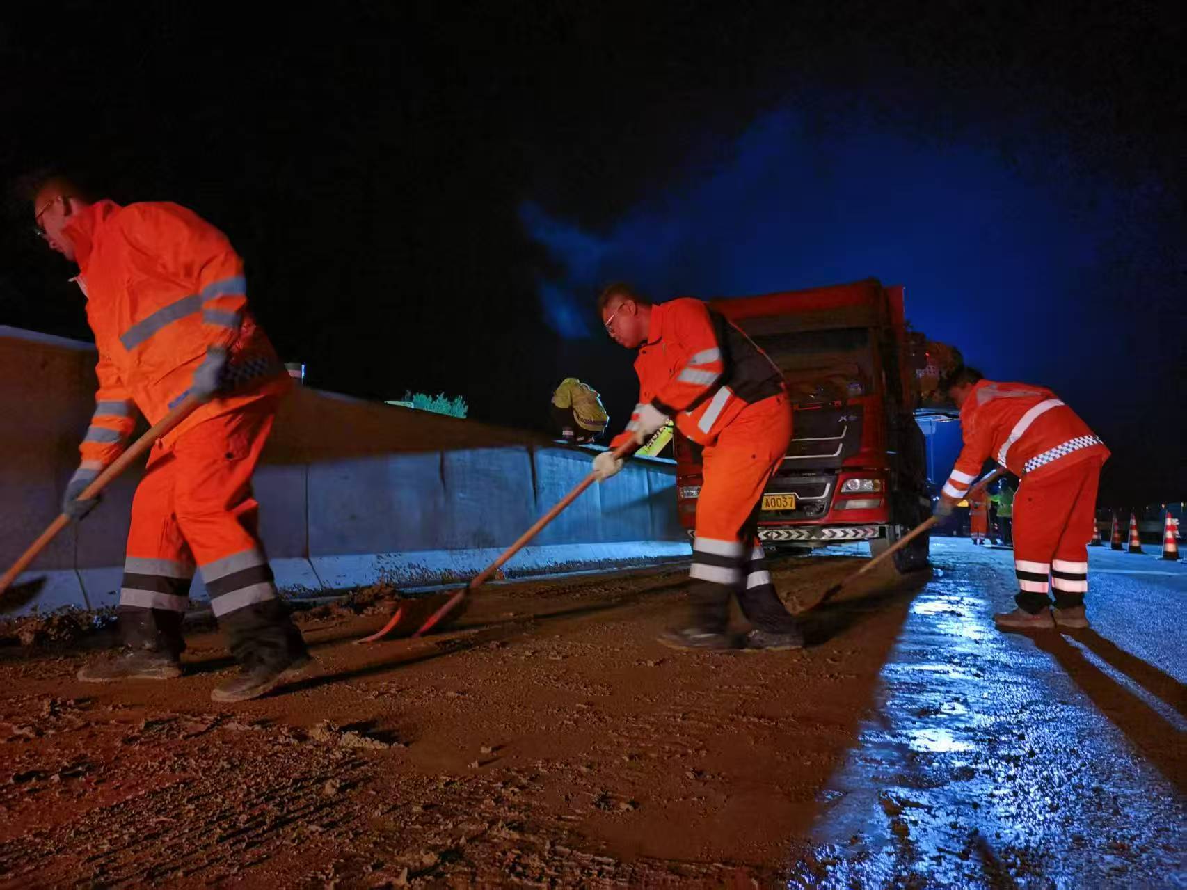 险情发生第一时间,高速公路运营管理平凉分公司党委坚决贯彻“人民至上、生命至上”理念,果断启动防汛救灾应急预案,按照“先抢通、后保畅”原则,吹响抢险“集结号”。养护部门连夜调集应急人员、机械设备及抢险物资火速驰援现场。环县收费所实时精准掌握路况,充分发挥战斗堡垒作用,迅速成立“党员先锋岗”和“青年突击队”抢险专班,让党旗在抢险一线高高飘扬。全体人员昼夜鏖战,采用“人工+机械”高效协同模式,打响保通攻坚战,集中力量优先清理超车道、行车道淤积,迅速恢复基本通行能力。