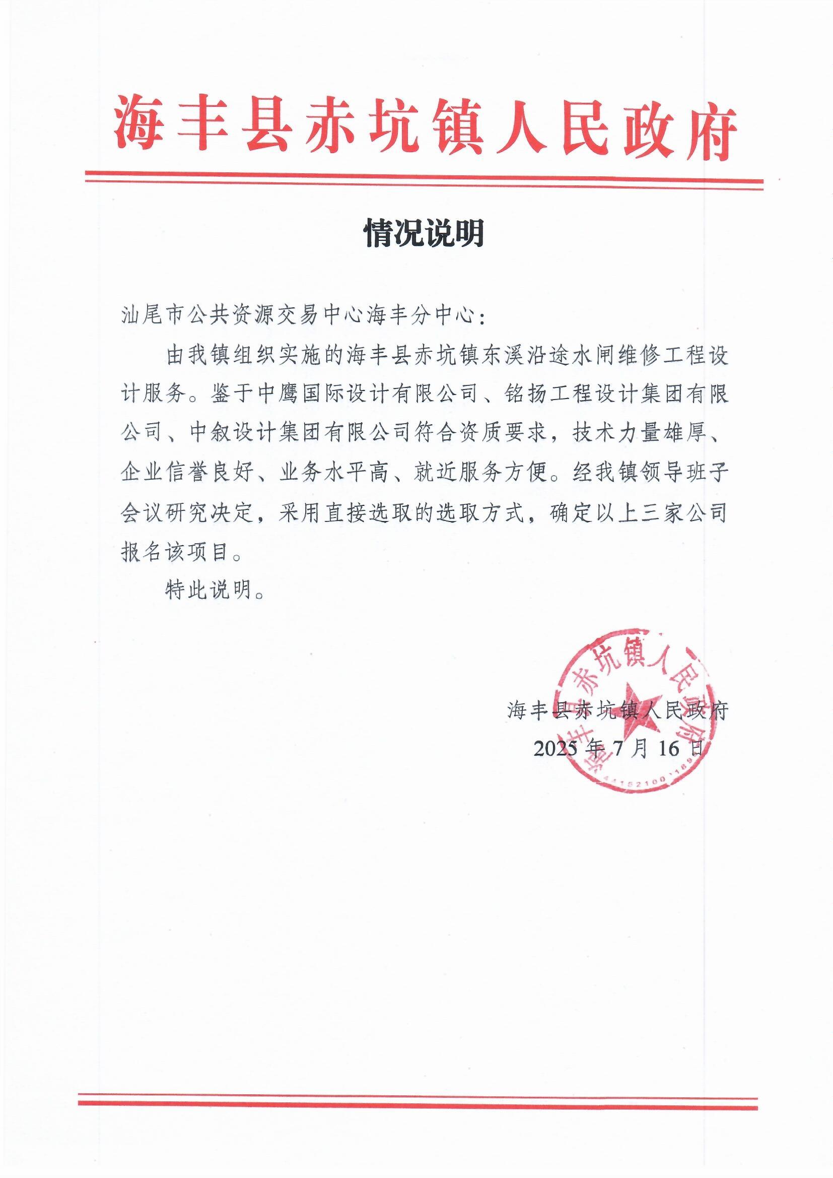 关于为【海丰县赤坑镇东溪沿途水闸维修工程设计服务】公开选取【工程设计】机构的公告